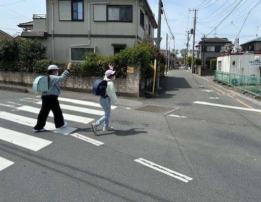 下校時には、しっかり手を挙げて横断歩道を渡る植水っ子!!