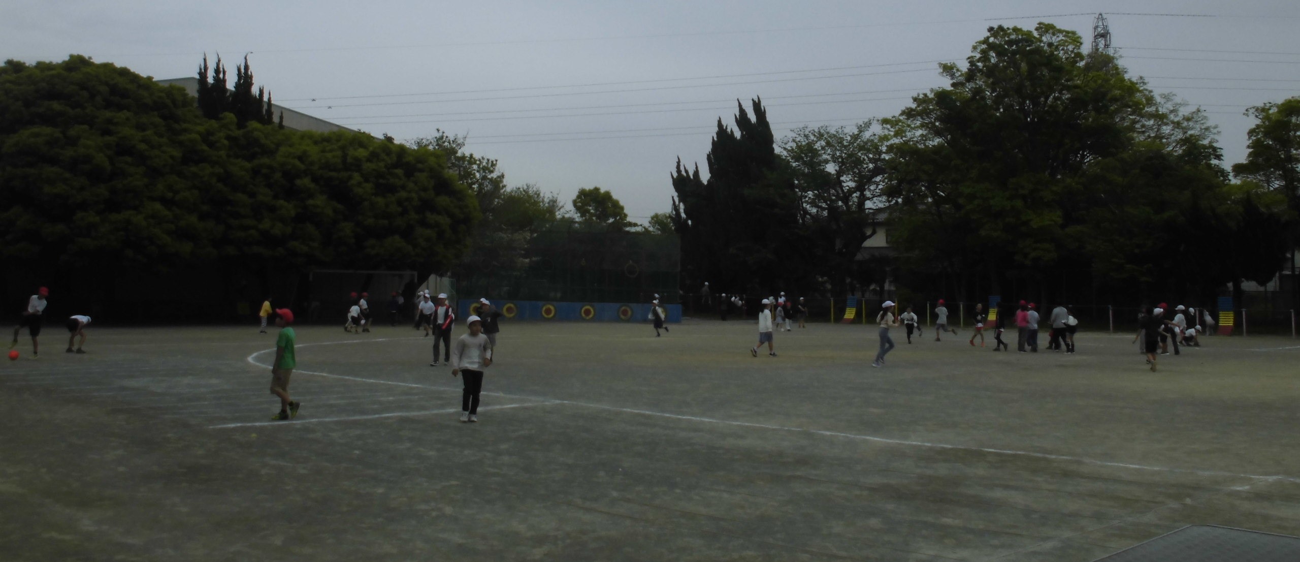 今日は一日気温の低い一日でしたが、午後から雨が降ってきてさらに冷たく感じる一日となりました。休み時間の校庭も、どんよりとした様子でしたが、子どもたちはその様子を吹き飛ばす勢いで体を動かしていました。