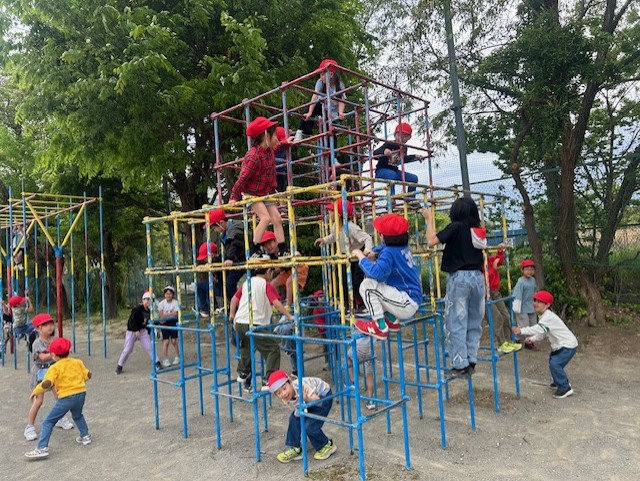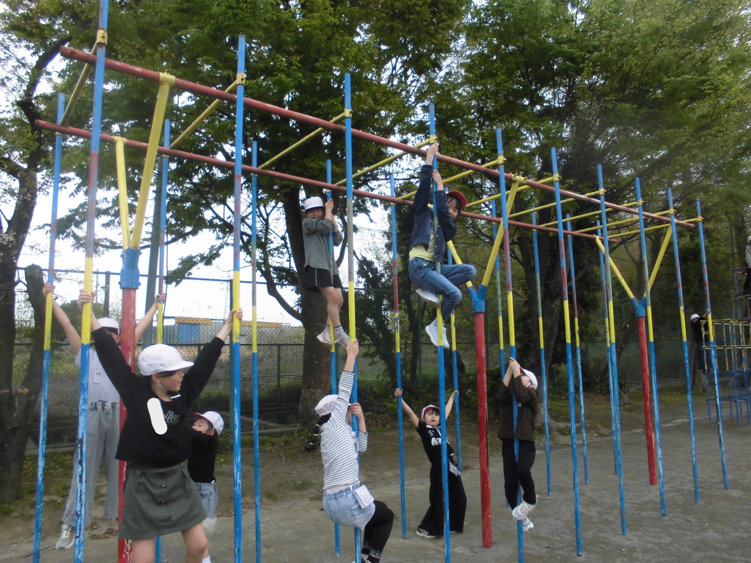 こんにちは。天気がどんよりした一日となりましたが、植水っ子には、そんなの関係ありません。のぼり棒で頂点を目指す子どもたち..たどり着けるように練習をがんばってください。