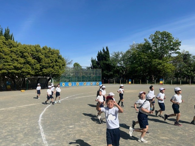 昼休みは、たくさんの1年生が "jungle gym" で遊んでいました。手は絶対に離さないように..そして、慌てないように..約束を守りながら楽しんでください。5時間目には、3年生が「リレー」の学習に取り組んでいました。晴天の下、子どもたちは "のびのび" 体を動かしていました。バトンパスは大切ですよ!! 練習がんばって。