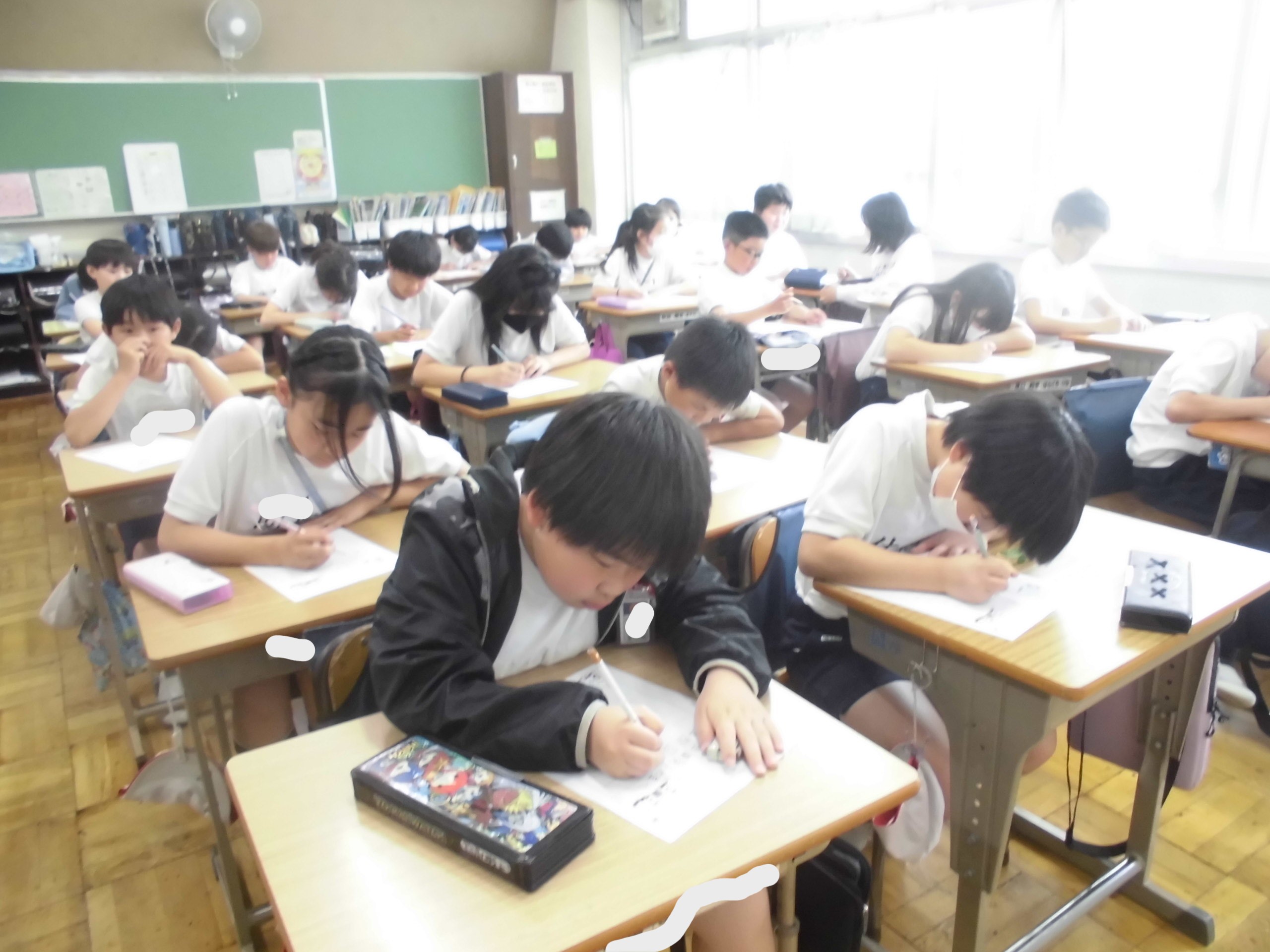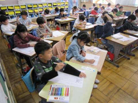 2年生も4年生も漢字の学習に取り組んでいました。画数が多い漢字を覚えるのは難しい!ですね。ひとつずつ書いて覚えていきましょう。5年生は外で50m走のタイムを計っていました。これからの体育で活用するのかもしれませんね。また、準備運動では「うえみずたいそう」でしっかり体をほぐしていました。いつになっても、できるようにしっかりやりましょう。