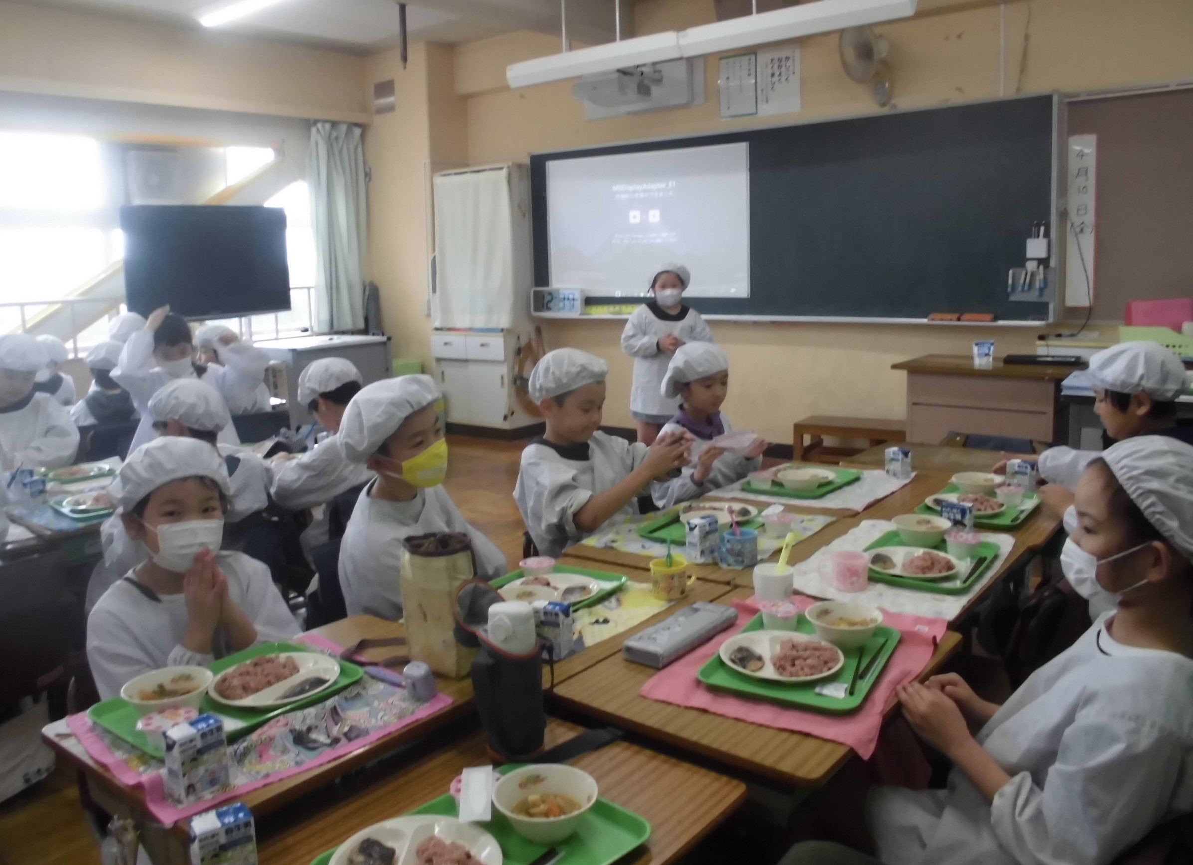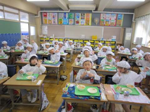 給食が始まって、3日が過ぎました。やはり、みんな給食が大好きなようです。残さずモリモリ..なんでも食べつくす植水っ子で !!