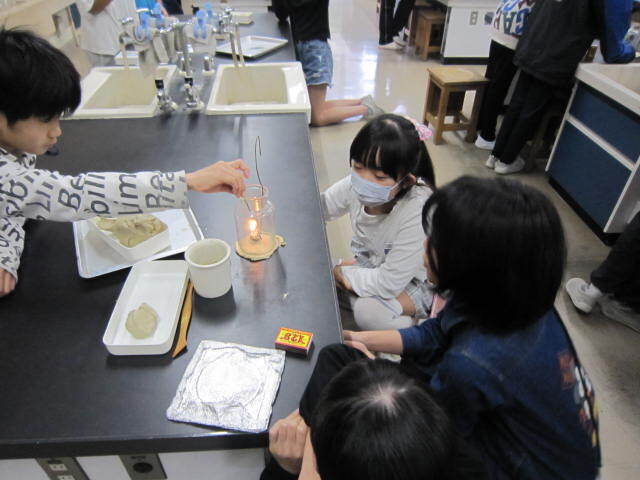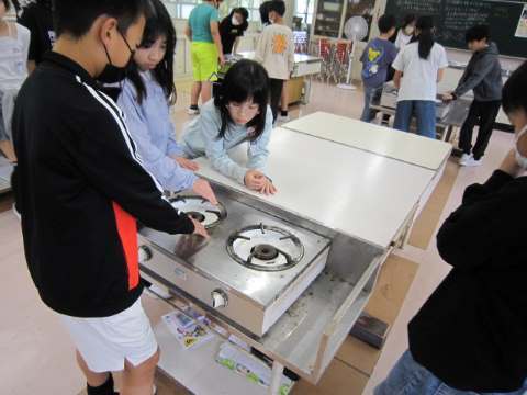 5年生は国語では「いつか大切なところ」を行っていました。5年生の国語は情景描写がとても大切になります。自分の気持ちが「うれしい」だけではなく、「たよりなく見える」も気持ちを表していますね。読みを深めて頑張りましょう!もう一つのクラスは家庭科でコンロに火をつけていました。みんなガス栓をあけてドキドキ…無事に火がつきました!!