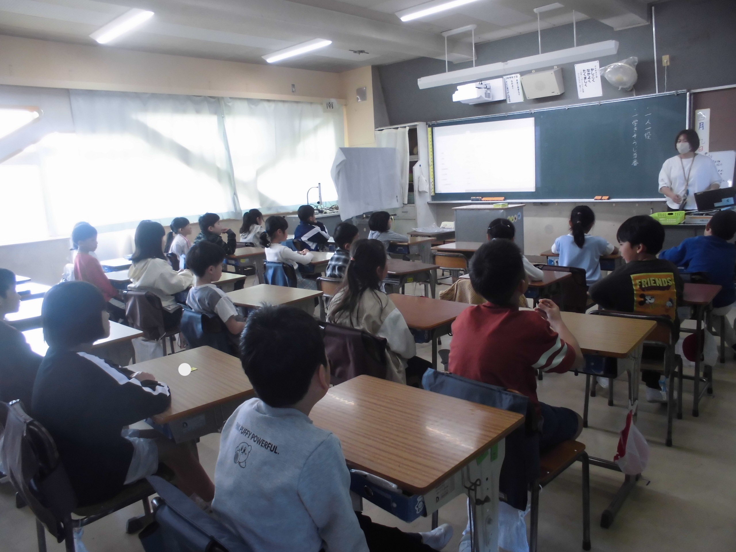 3年生は授業参観・懇談会でした。新しくはじまる総合の学習とは?についてガイダンスを行うクラスと、国語の「白い花びら」の学習をしていました。全員で○読みに取り組みました。お家の人の前で緊張したかもしれませんが、みんな頑張りました。保護者の皆様、来校いただきありがとうございました。