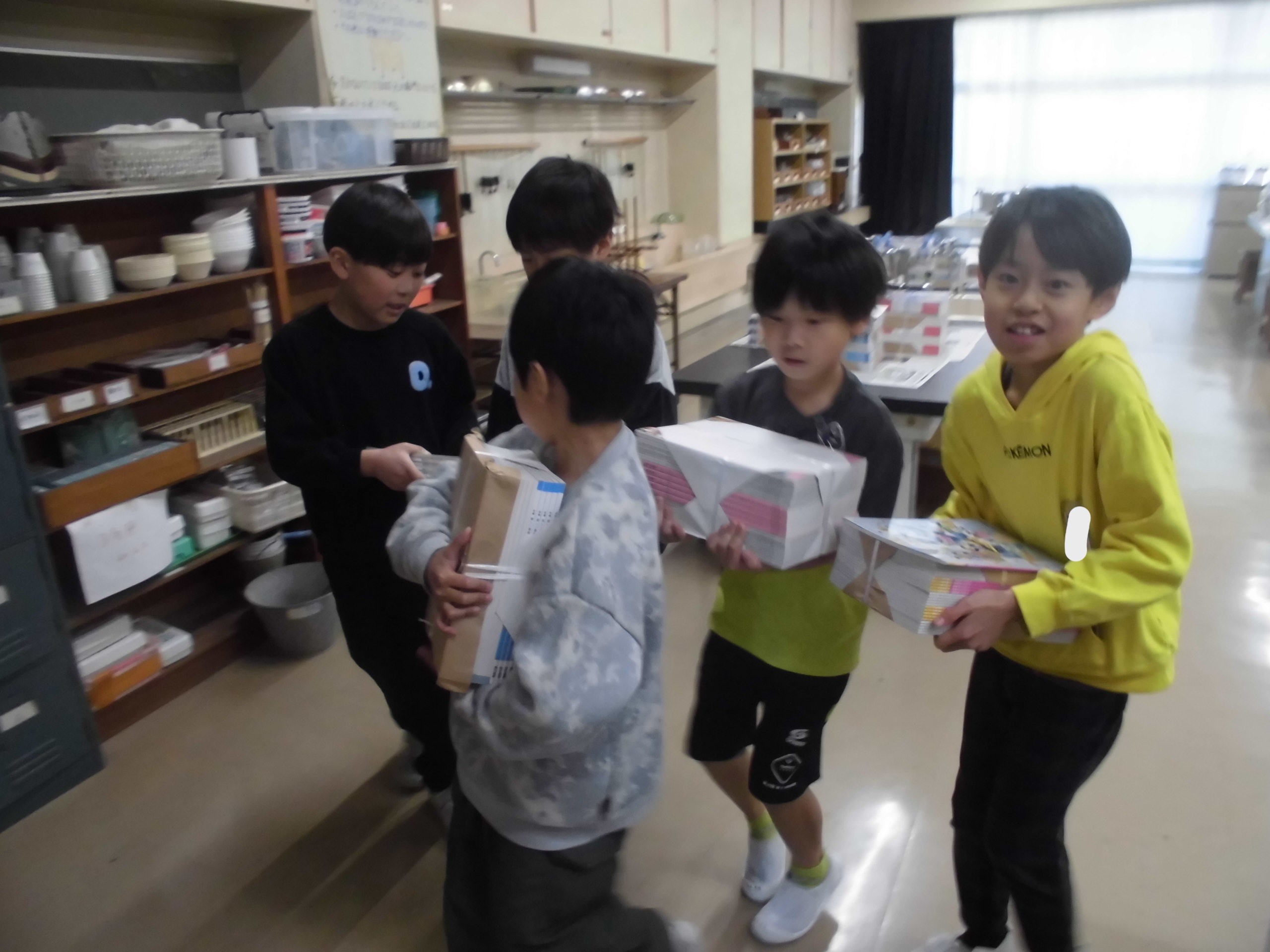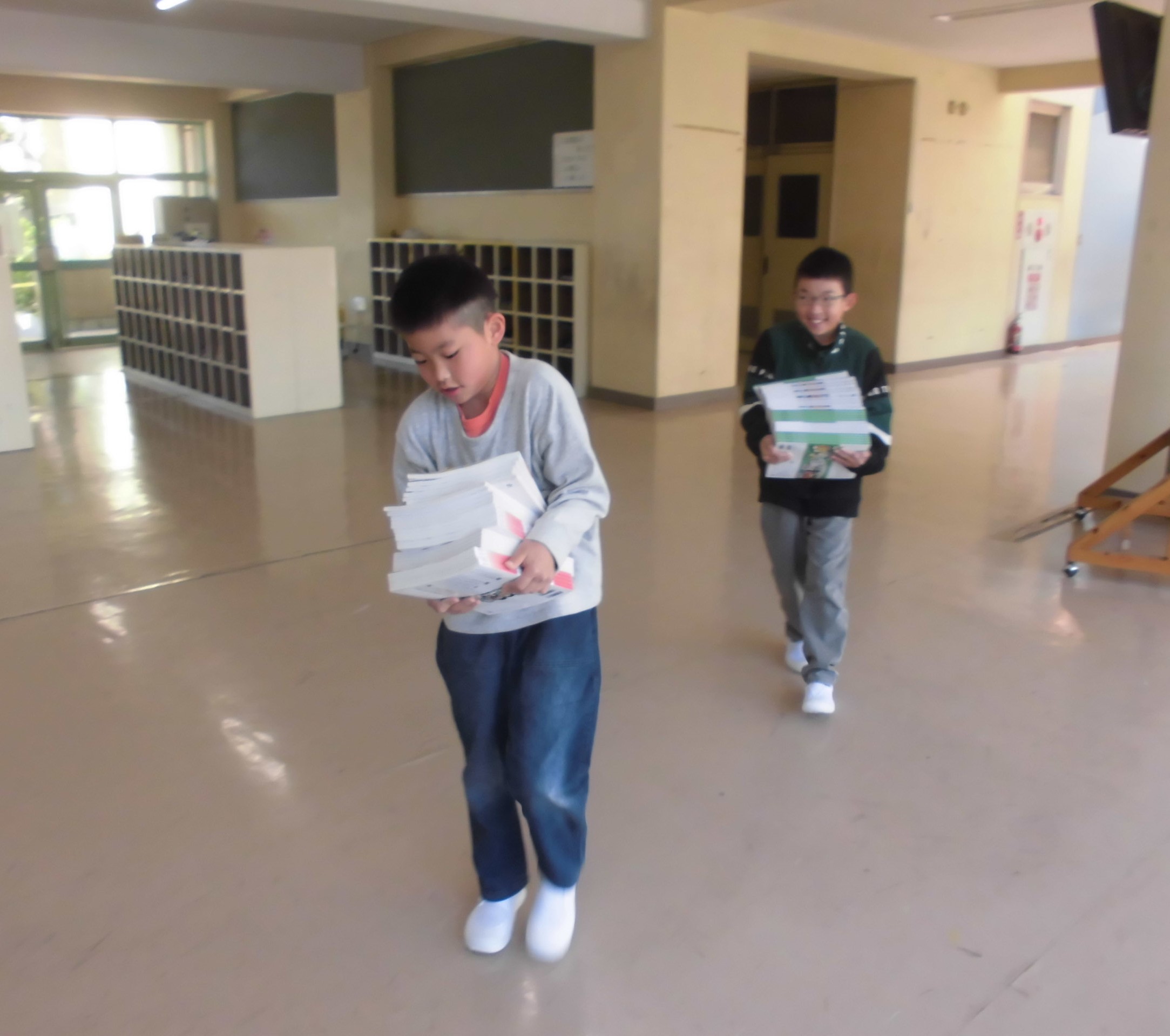 本日、新しい教科書も配付されました。「教科書は大切な友だち」と言いながら、大事に運ぶ子どもたちの姿に感心させられました。