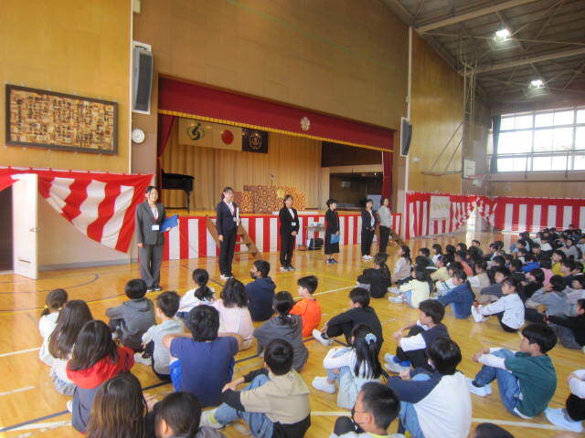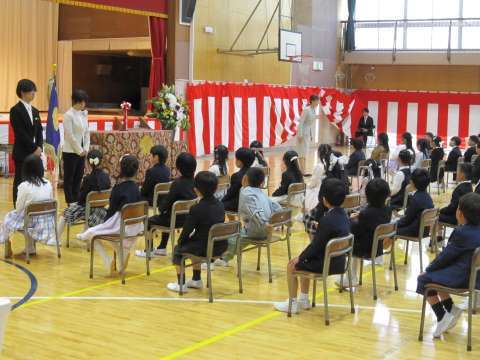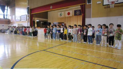 朝は1年生を迎える会がありました。6年生に教室前でメダルをかけてもらい、ピカピカの1年生が素敵な笑顔で体育館に入場してきました。緊張した面持ちながら、2年生以上の上級生の温かい言葉がけに安心した様子も見せていました。たくさんの1年生の保護者の方にもご覧いただきました。静かな参観へのご協力ありがとうございました。