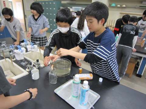 6年生は理科の実験で「気体検知管」とセンサーを使って燃える前と、物が燃えた後の空気の酸素や二酸化炭素の量について実験しました。1時間で終わらなかったので次回は土曜日となりますが、続きを行います。楽しみにしていてください!