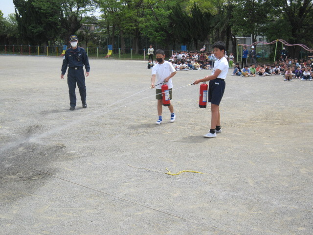 2時間目の終わりから避難訓練がありました。消防署の方をお招きして避難の仕方や、消火器の使い方など大切なことをたくさん教わりました。みなさんも安全に気をつけて、いざというときには自分の身を守ることができるように、大人の話をしっかり聞いたり、自分で考えたりすることがとても大切です。消火器訓練では、先生を代表して2名、児童を代表して8名が全体の前で消火訓練を行いました。とても貴重な経験になりました。
