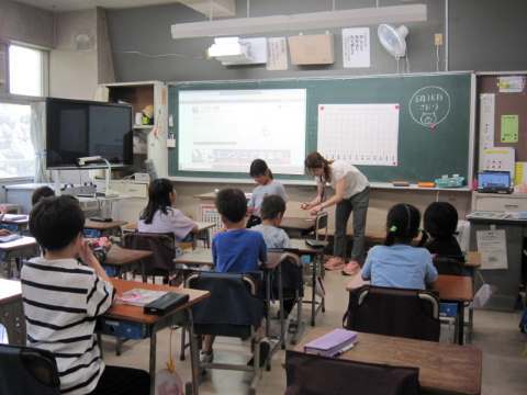 4年生は国語の学習で言葉から連想するゲームに取り組んでいました。言葉から想像を膨らませ、次の言葉に繋げていきます。頭で考えることがとても大切で、みんな必死に脳みそをフル回転させて頑張っていました。