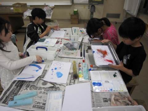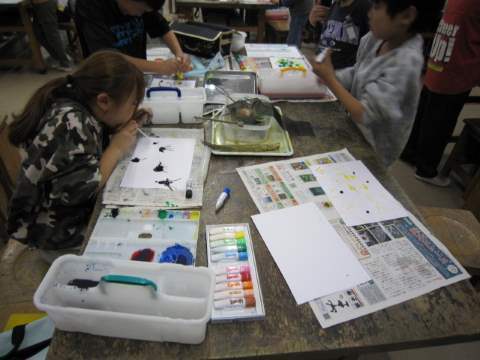4年生は5・6時間目に図工で「いろいろ絵の具研究所」に取り組みました。新しく習った図工の技法、スパッタリングやマーブリングを使って、画用紙に様々な模様の形を描いていました。この作品を今度作成する本体にくっつけるようです。どんな作品ができるのか楽しみですね。