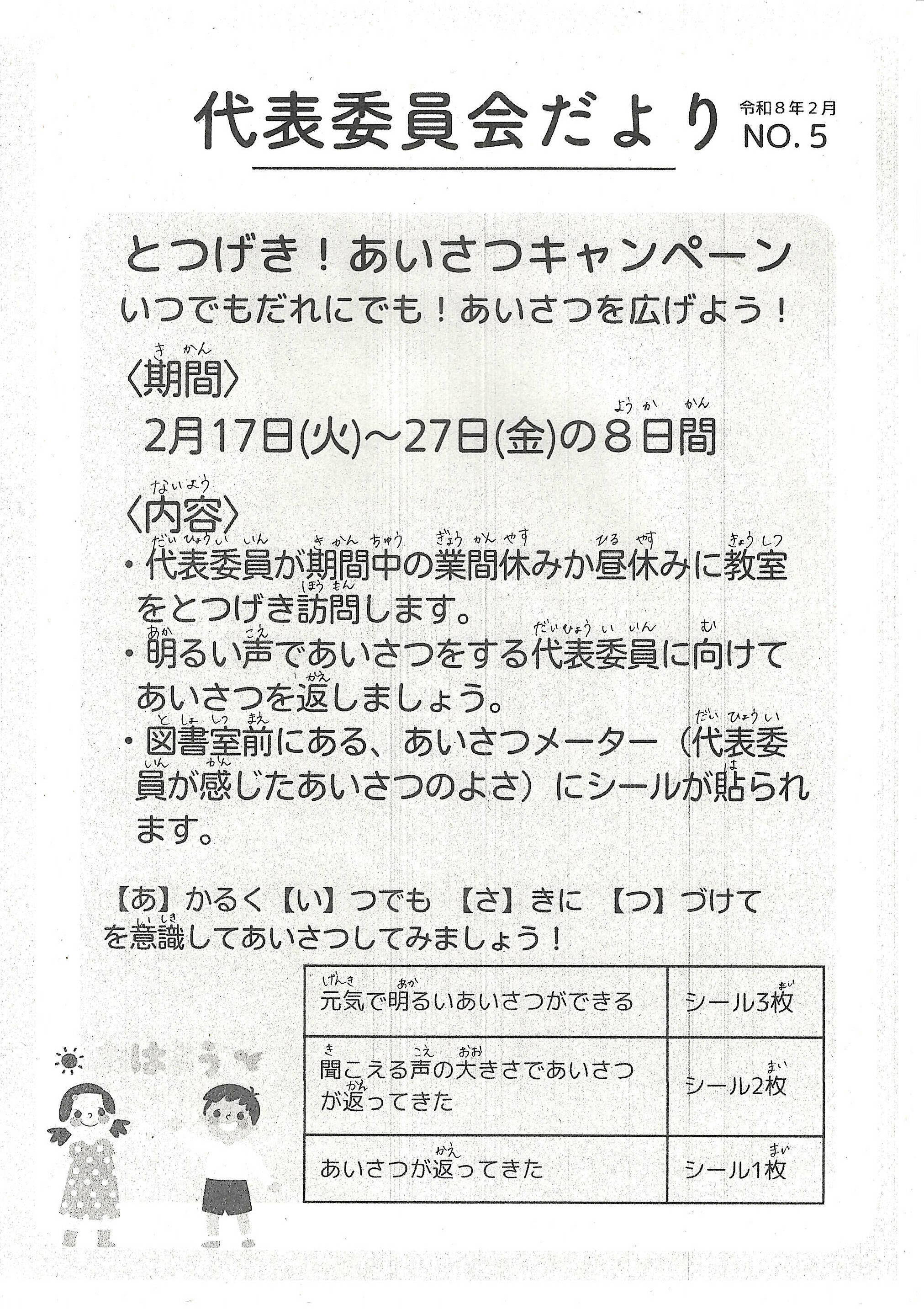 こんにちは。すっかり最近は過ごしやすい日が続くようになり、「春」がすぐそこまで来てることを日々実感できるようになりました。よかったです。そんな中、休み時間は、校庭に出る子どもたちも増え、活発に体を動かしている姿を見ると、なんだかこちらも元気になってきます。ありがとう。
