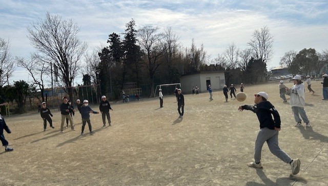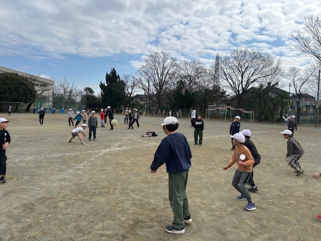 しかし、子どもたちにとっては、寒さは関係がありません。頭が下がります..バスケットボールかラグビー、どっちをみんなでやっているのかわからなかったのですが、とても楽しそうに体を動かしていました。寒さに負けるな、植水っ子!!