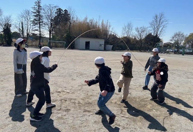 休み時間には、仲間と大繩の練習をしている植水っ子たちの姿がありました。どうすれば、あいだを空けずにスムーズに跳び続けることができるのか互いに声かけしあっていました。いいですね!! たくさん練習してください。