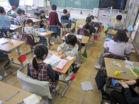 1年生は5時間目に、国語の「1年生でがんばったこと」を書いていました。みんなそれぞれ初めての小学校生活で思い出に残っていることがあるようです。勉強を頑張った子、運動会を頑張った子どんな作文ができるのか楽しみですね。また、もうひとクラスでは、1年生の最後の会でみんなに渡す手紙を書いていました。今まで一緒のクラスメイトだった友達に向けてメッセージと折り紙でハートやチューリップを作っていました。それぞれの大切な気持ちが当日みんなに伝わるといいですね。