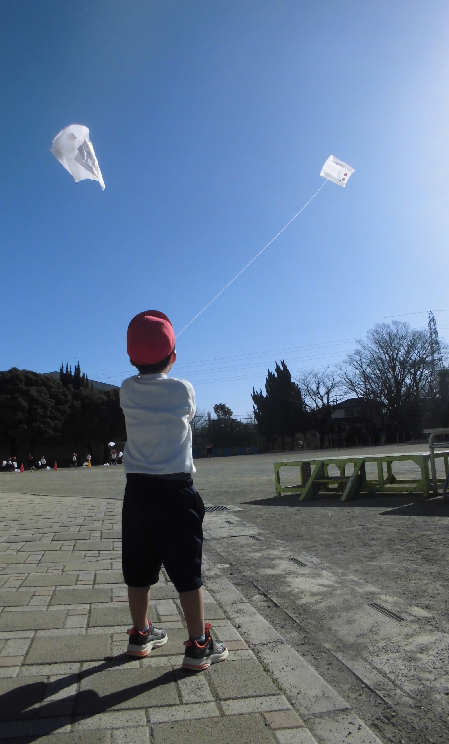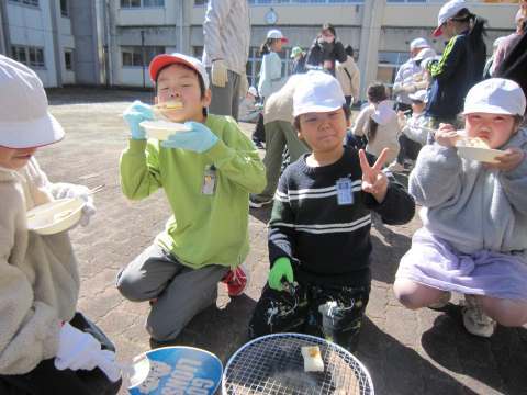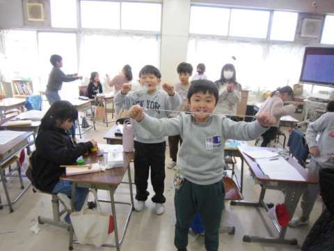 さて、今日は1年生が生活科の学習で「みずべの里」に行きました。冬を楽しもう!ということで、自分たちの作った「傘袋ロケット」を飛ばしたり、「風車」を回したりしました。2枚目の写真解像度を下げているので分かりにくいですけどいい写真です。みんな寒い中でしたが大きな声を挙げて冬を楽しみました!