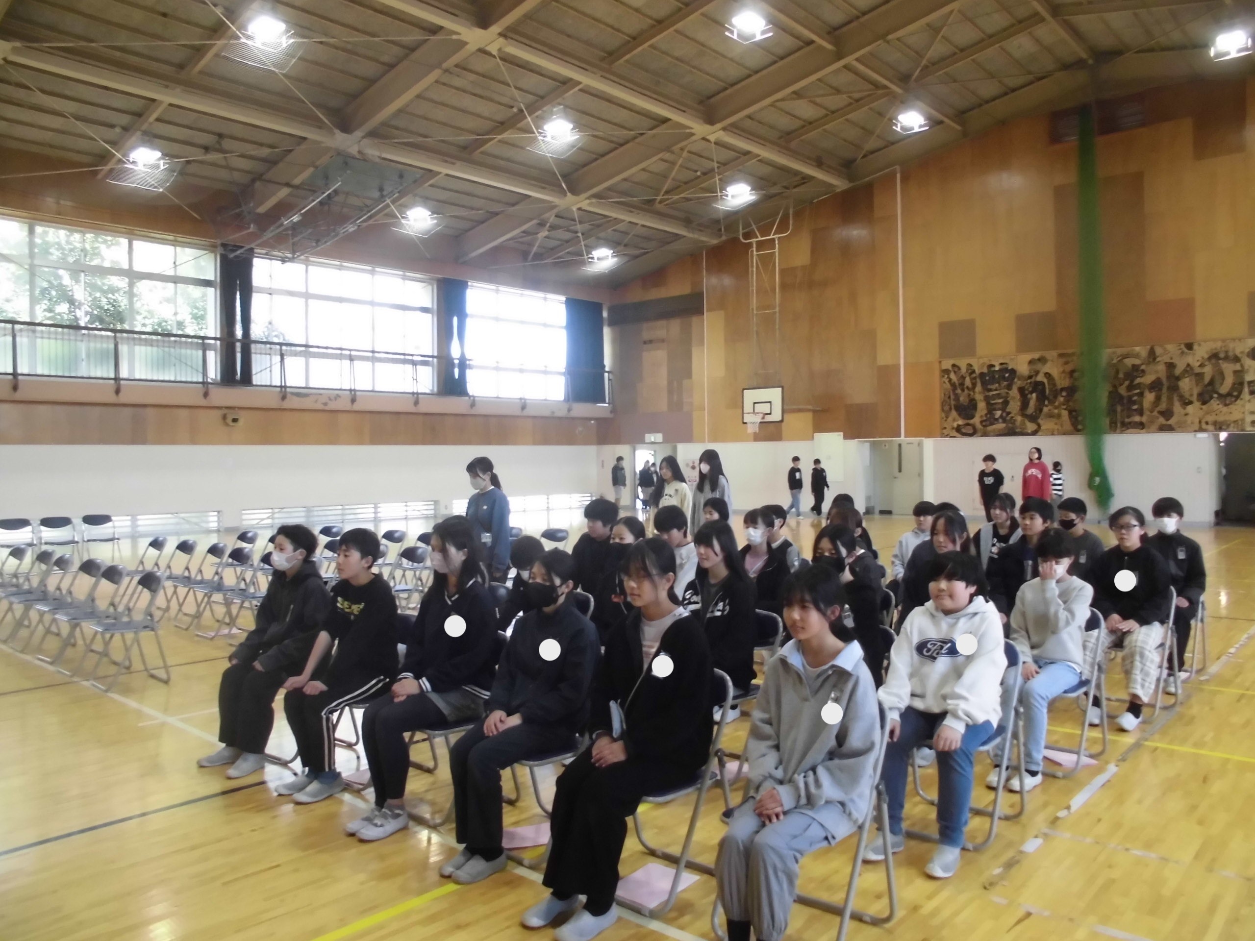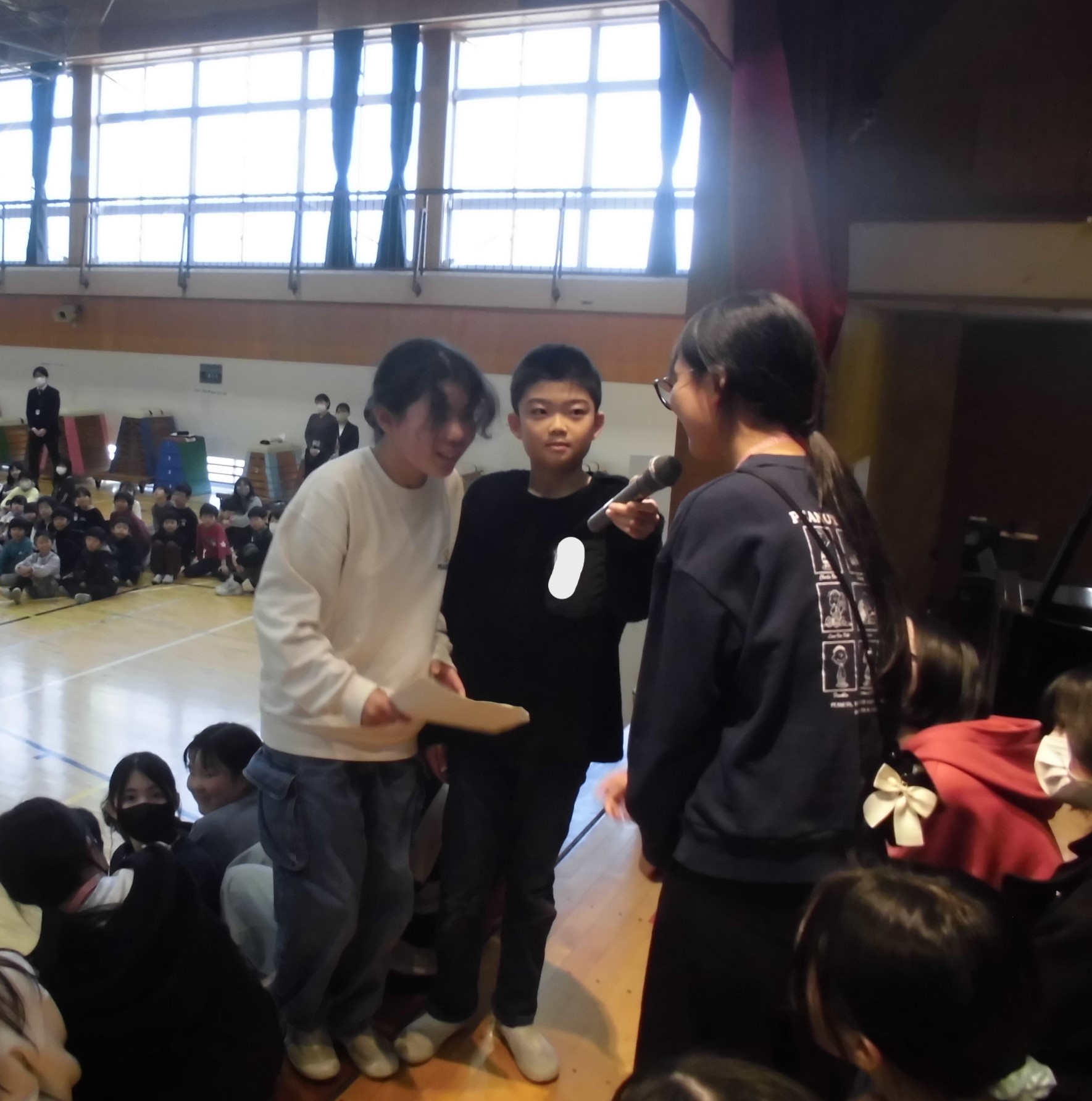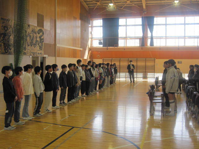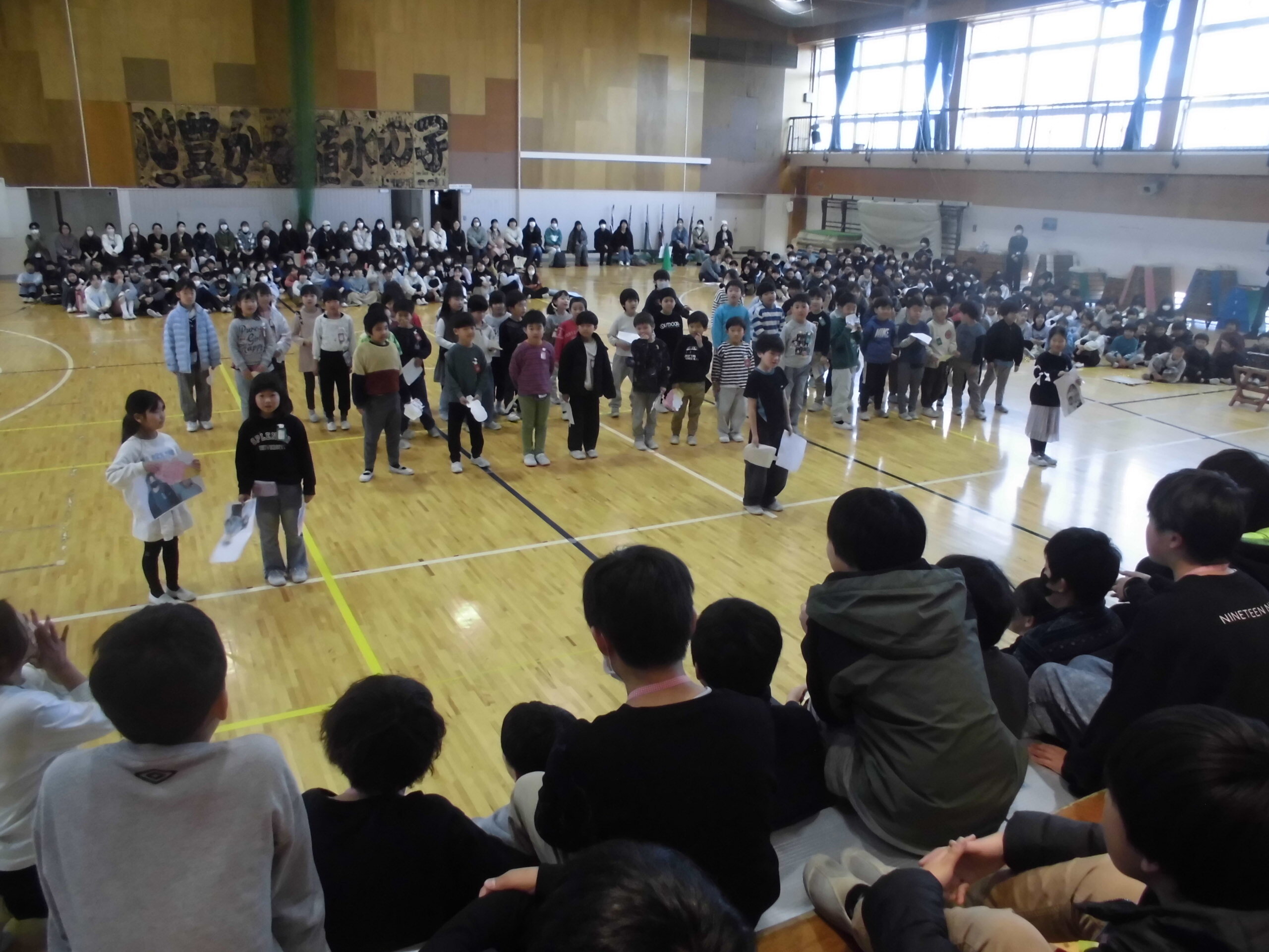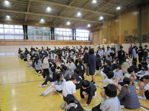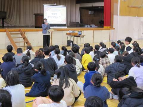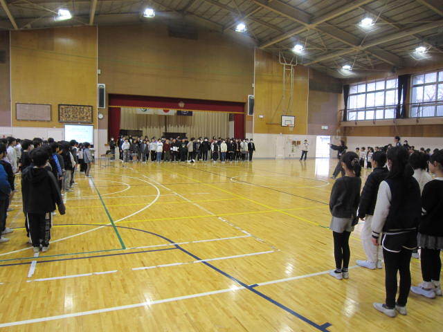 寒い体育館で今日も朝会がありました。今日は講話・生活朝会です。講話は基本的に校長先生のお話なのですが、今日は校長先生が出張だったので、代わりに教頭先生のお話となりました。教頭先生は「感謝」「あいさつ」「来年度に向けて」といった話がありました。最近、あいさつについては元気がないと、地域の見守りを頂いている方からもご意見があります。地域のボランティアの方の活動への元気の源は子どもたちの笑顔と挨拶です!学校でも繰り返し話をしていますが、改めてご家庭でもお話いただけるきっかけとなればありがたいです。