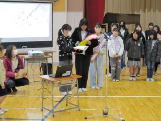 風が吹いていましたが、昼にはとても暖かくなり、運動をするのにも最適な気候となっていました。給食の時間には今度の20日(火)に行われる「シェフ給食」についての説明が給食委員からありました。どんな給食が出るのかとても楽しみですね!