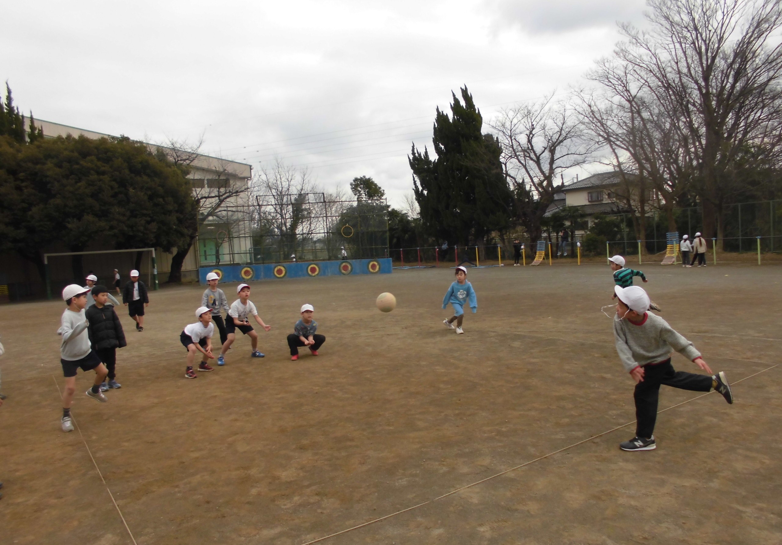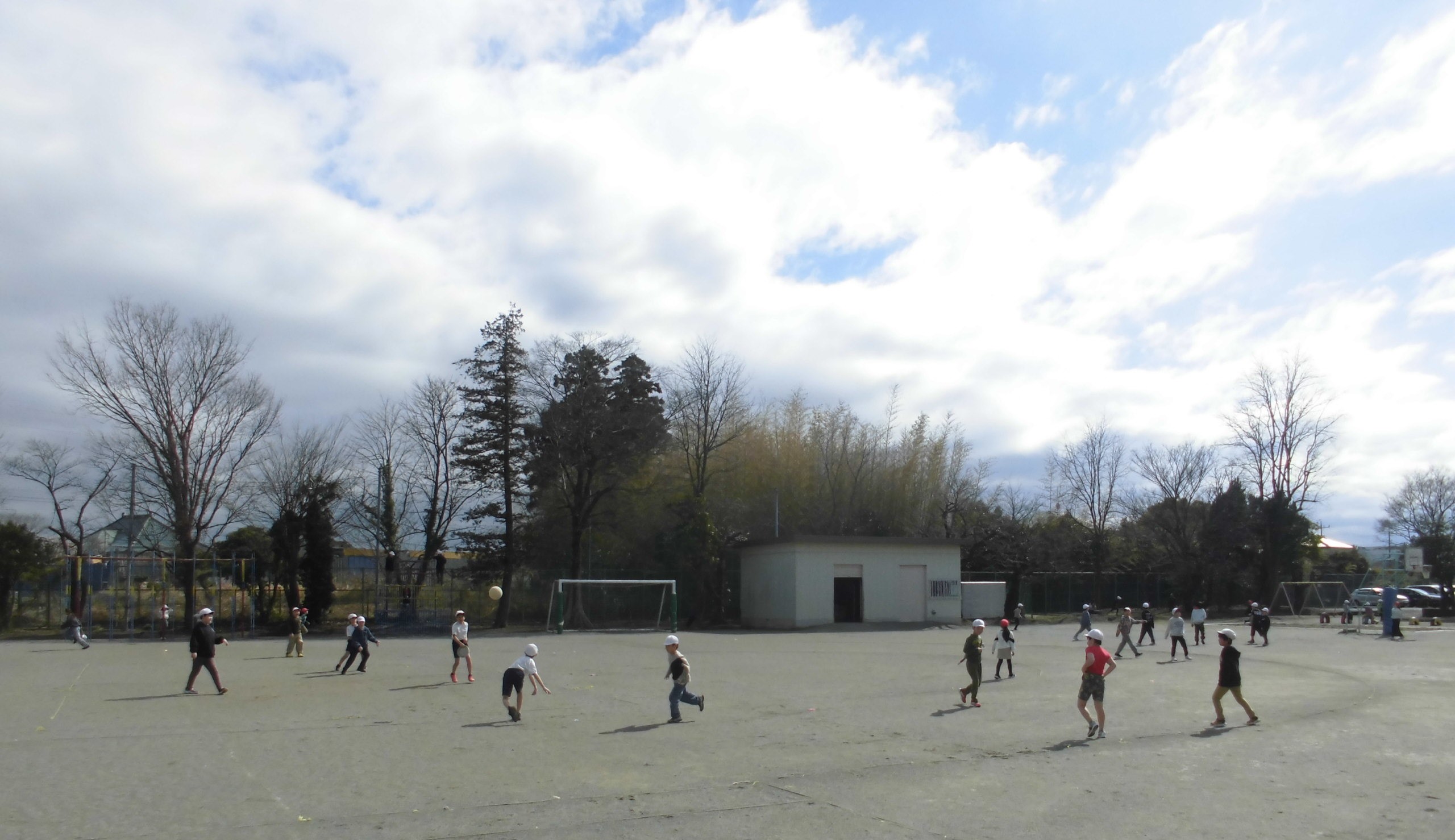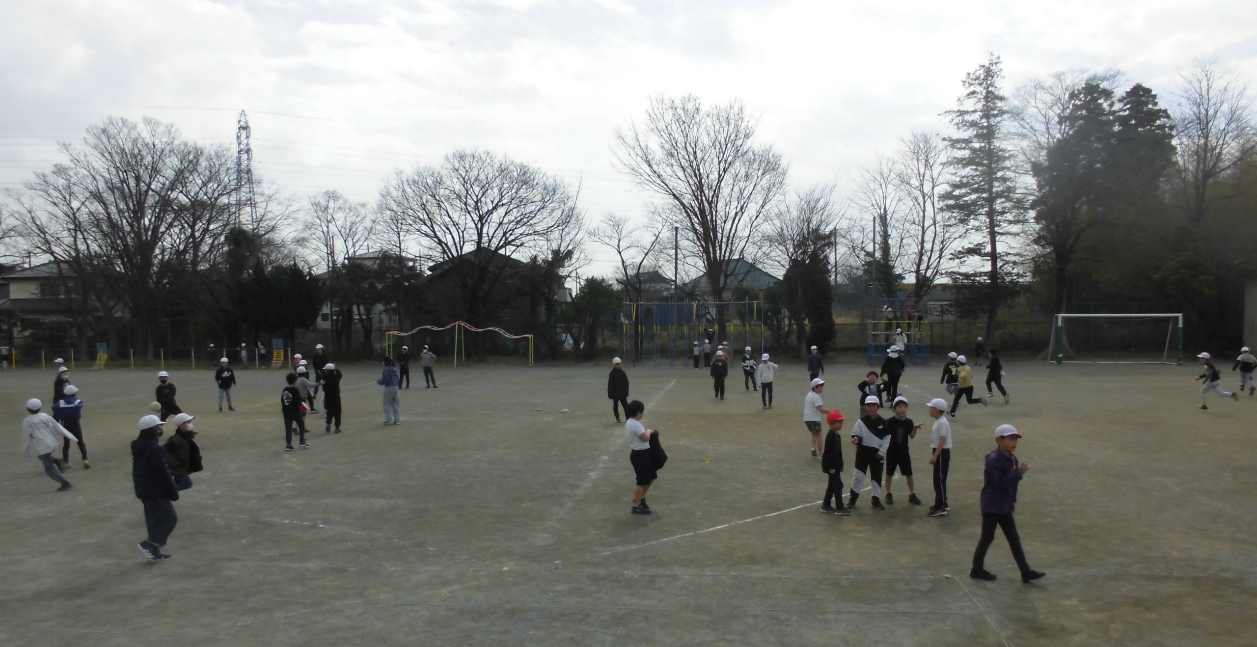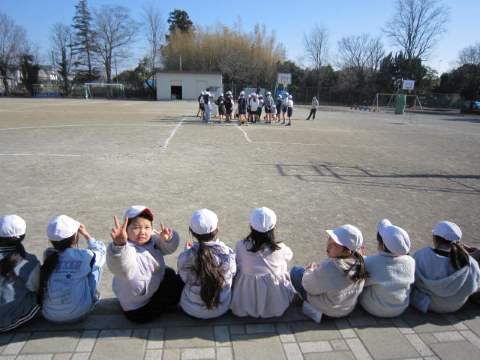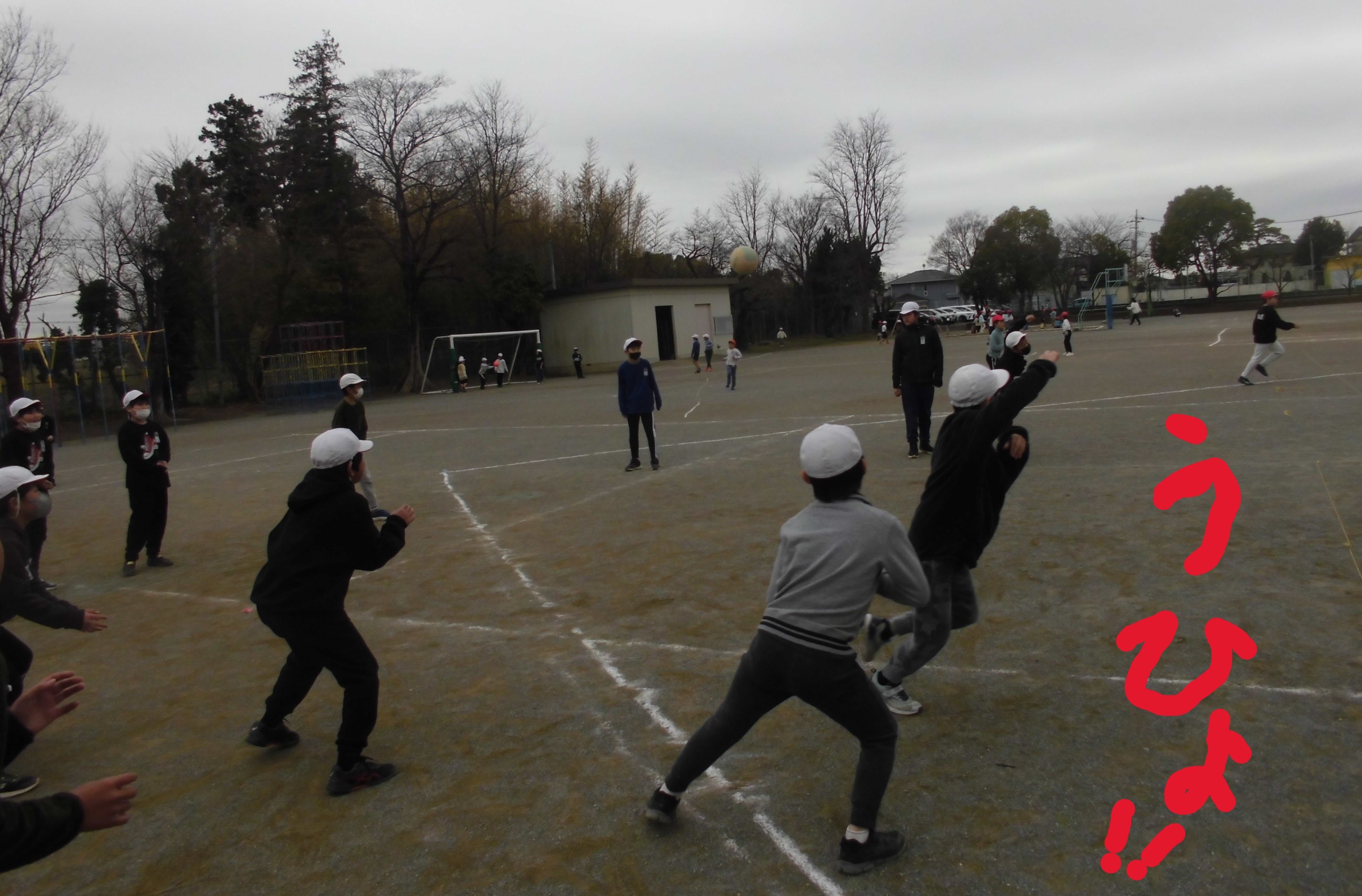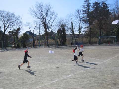 しかし、子どもたちにとっては、寒さは関係がありません。頭が下がります..バスケットボールかラグビー、どっちをみんなでやっているのかわからなかったのですが、とても楽しそうに体を動かしていました。寒さに負けるな、植水っ子!!