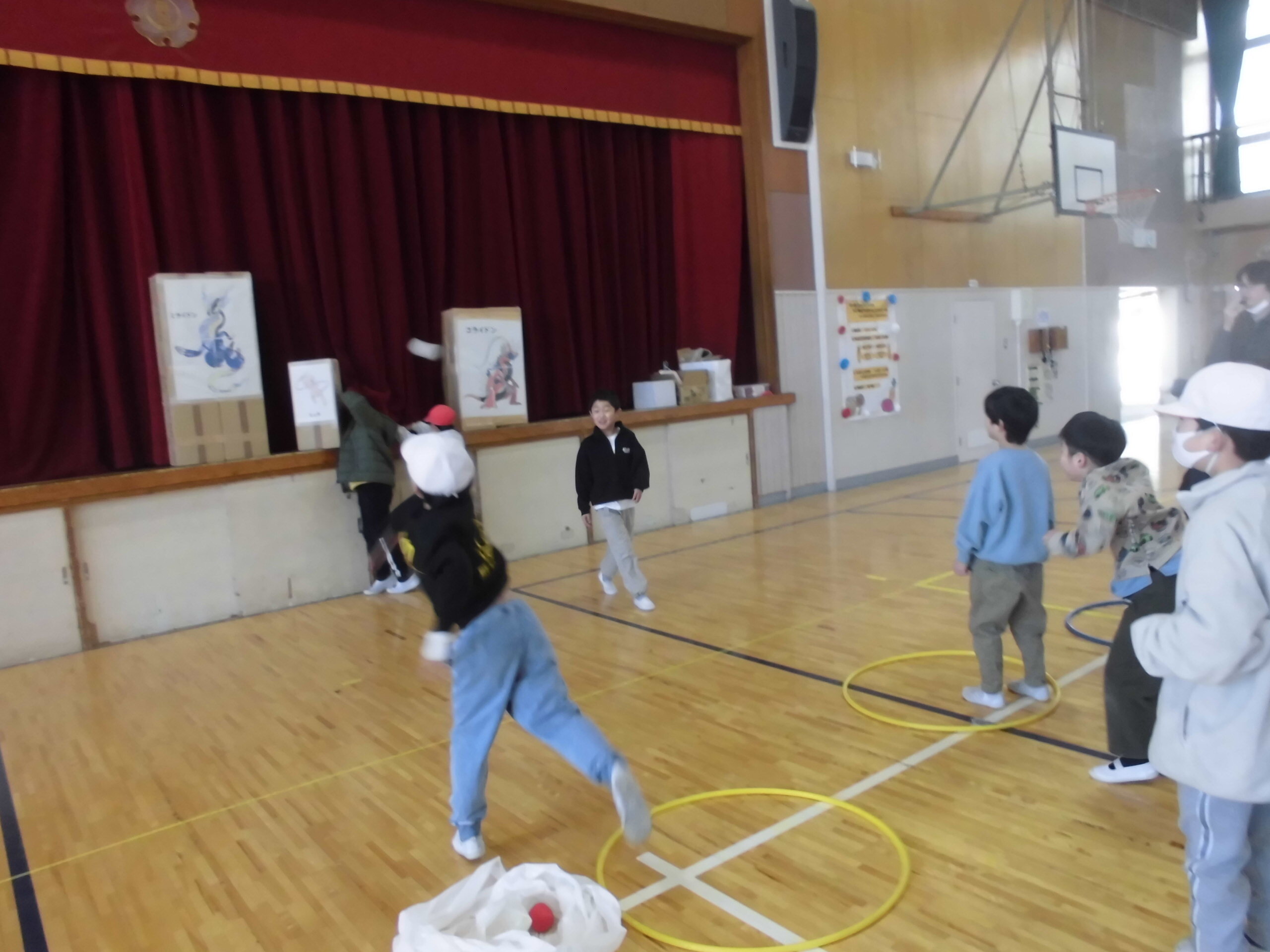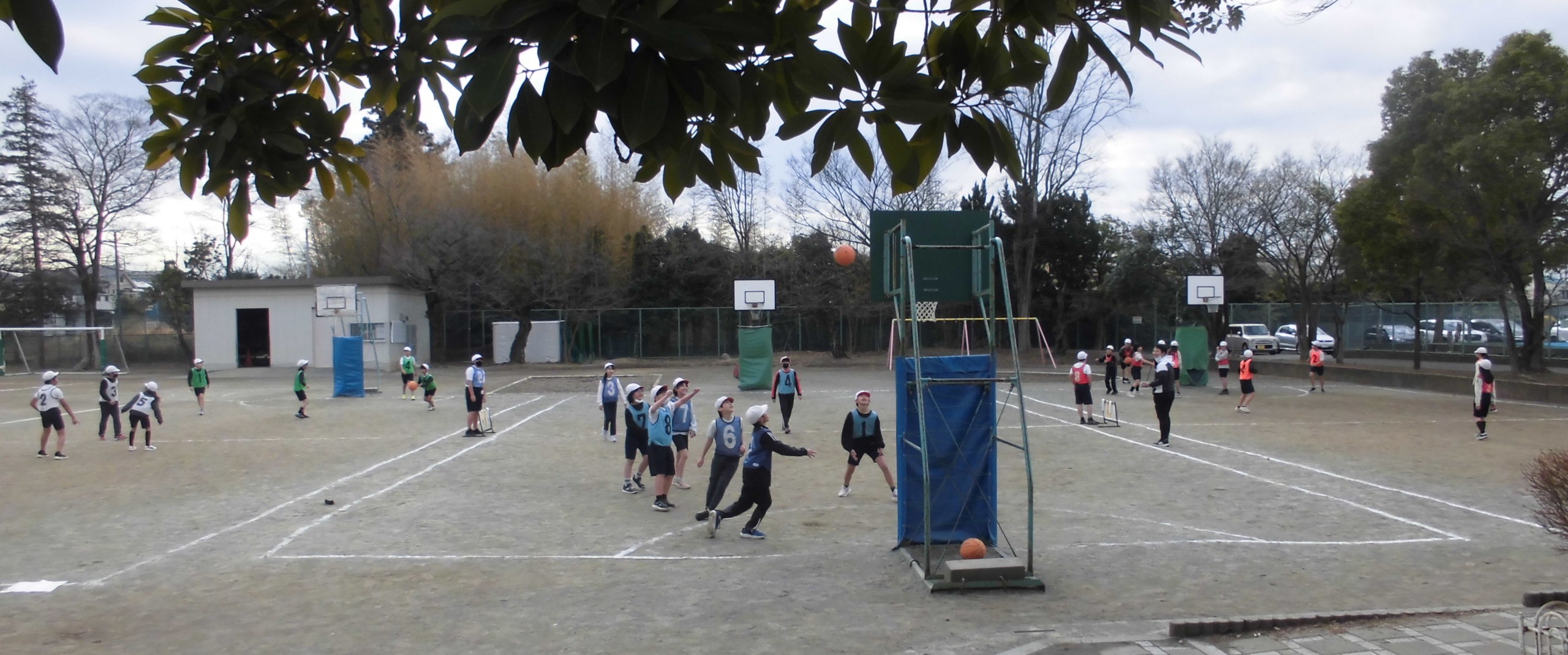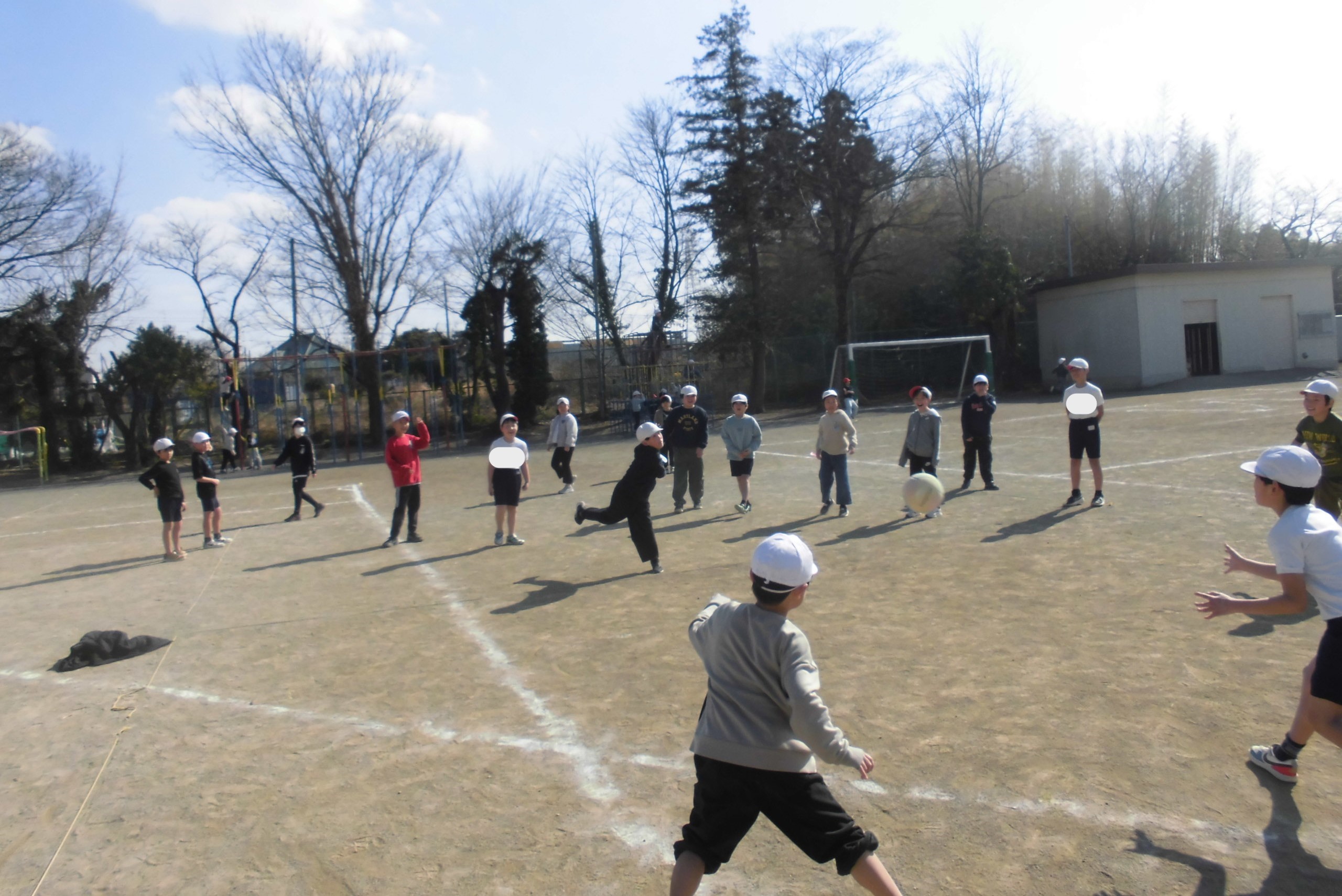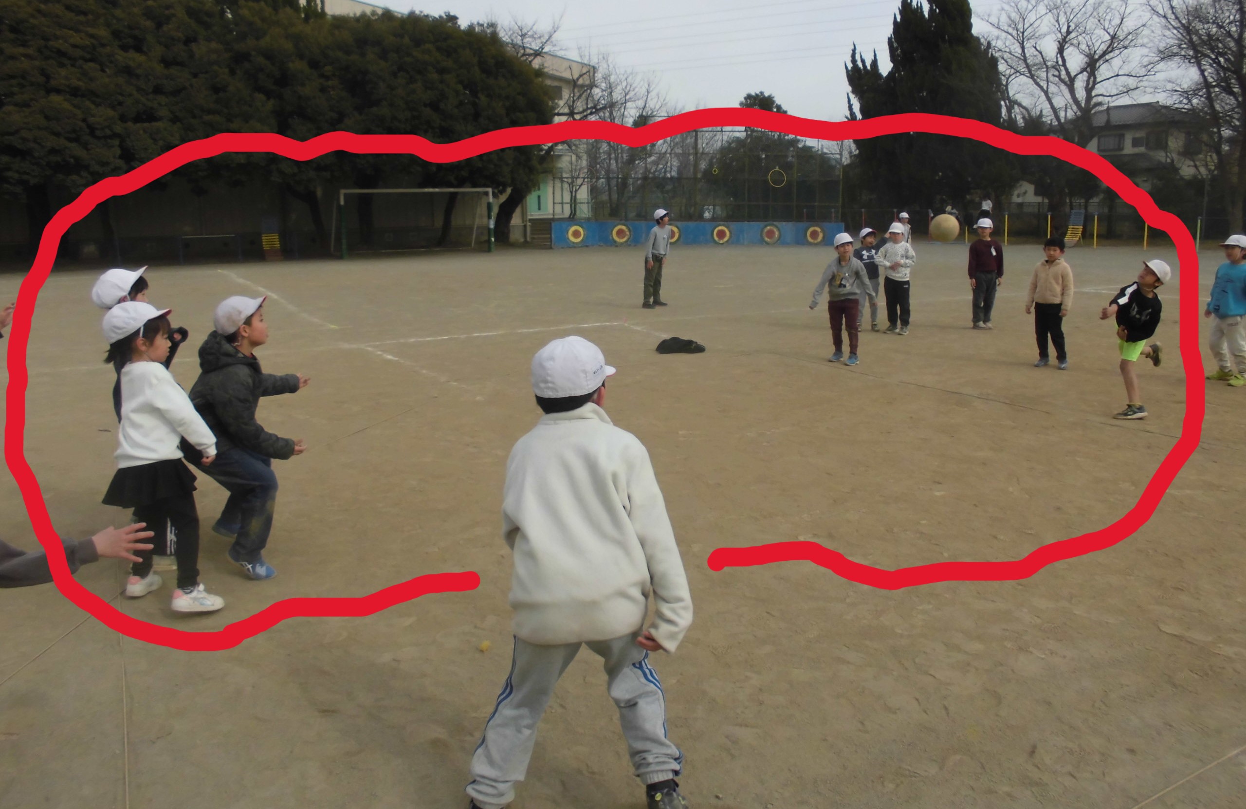 しかし、子どもたちにとっては、寒さは関係がありません。頭が下がります..バスケットボールかラグビー、どっちをみんなでやっているのかわからなかったのですが、とても楽しそうに体を動かしていました。寒さに負けるな、植水っ子!!