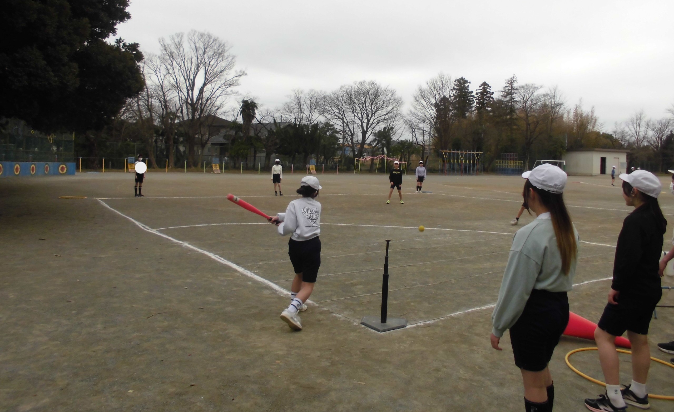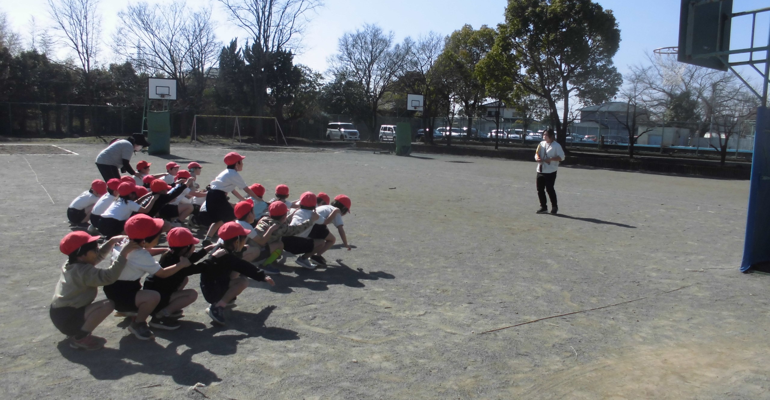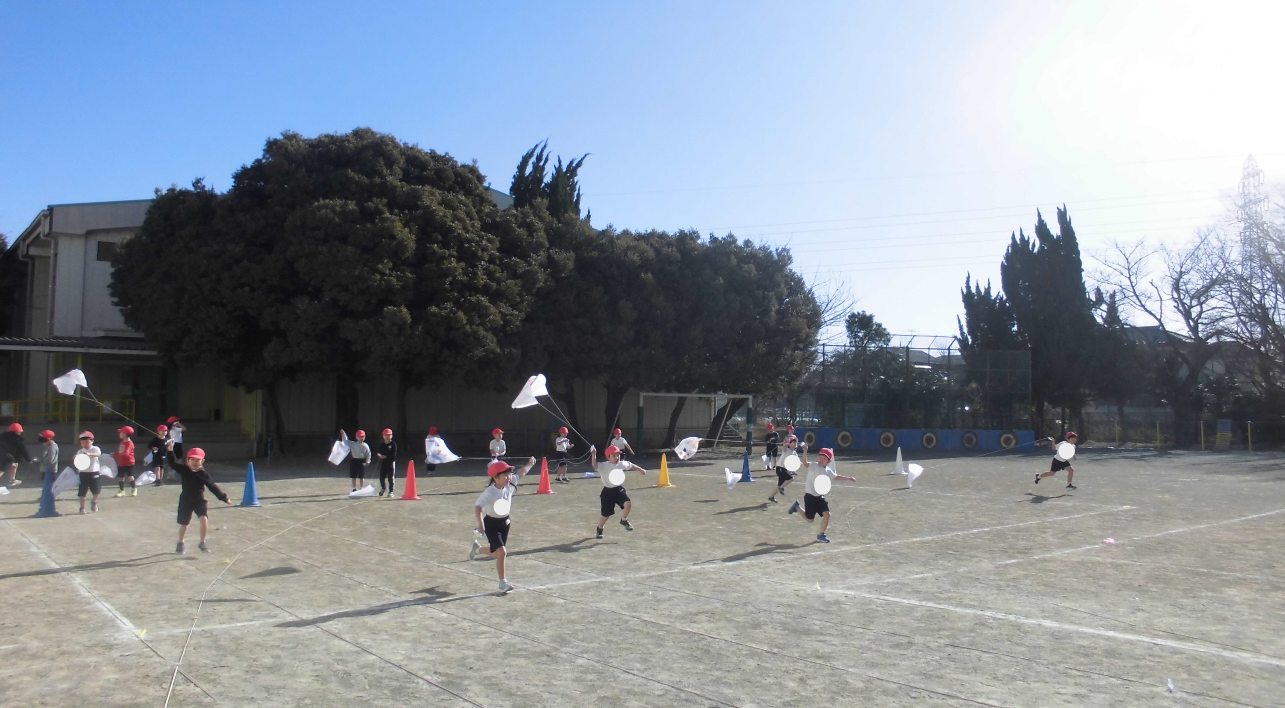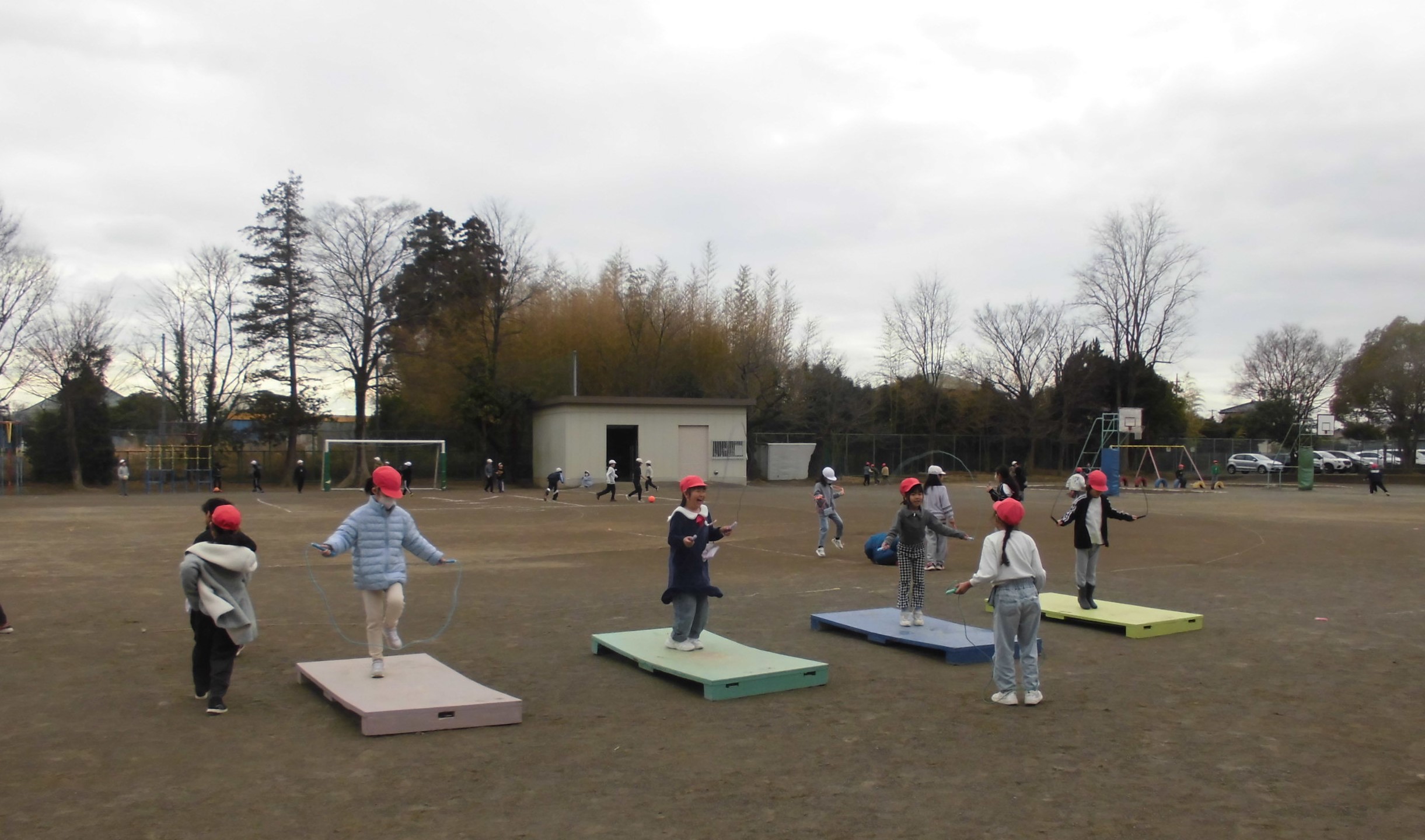 しかし、子どもたちにとっては、寒さは関係がありません。頭が下がります..バスケットボールかラグビー、どっちをみんなでやっているのかわからなかったのですが、とても楽しそうに体を動かしていました。寒さに負けるな、植水っ子!!