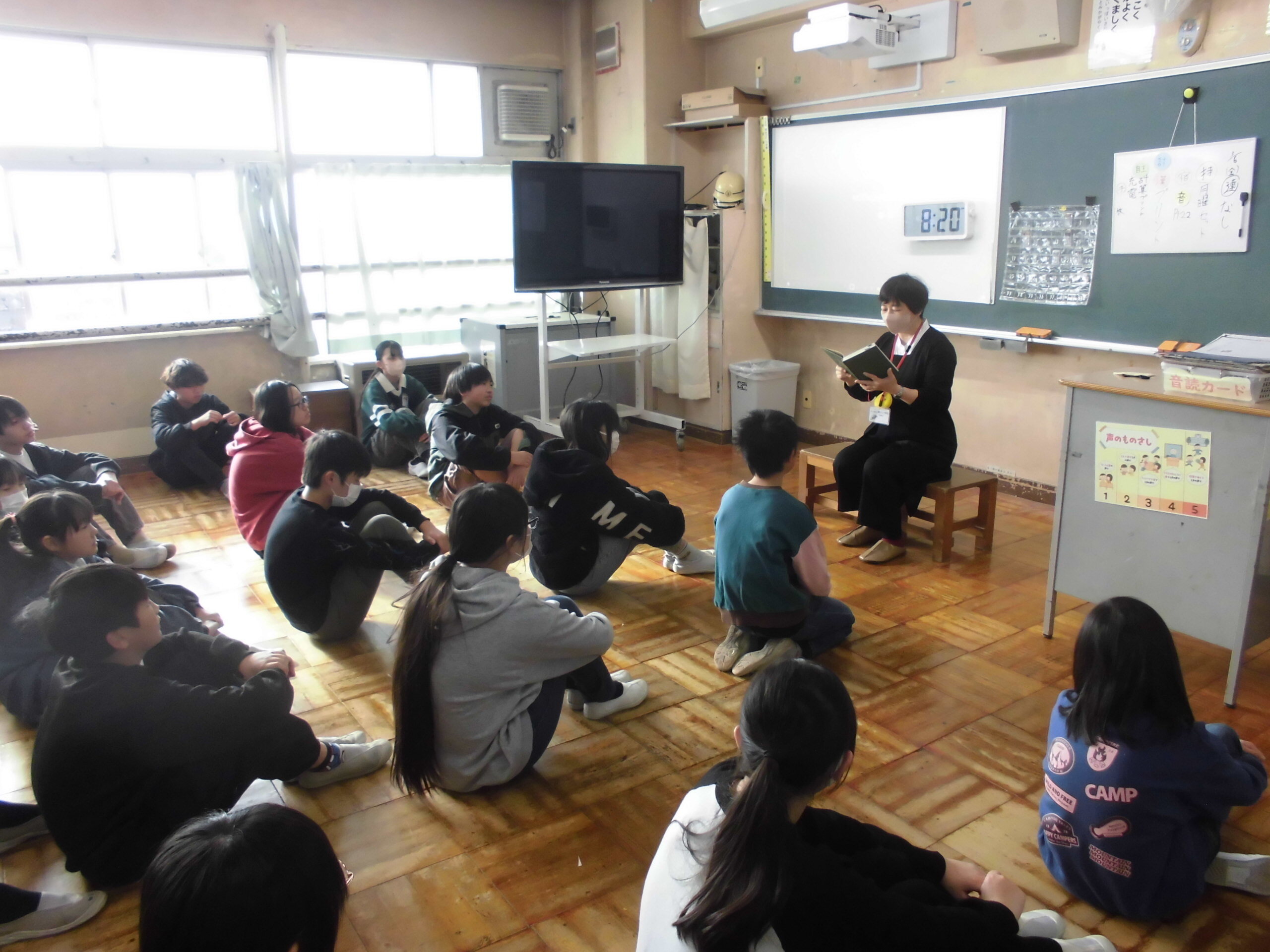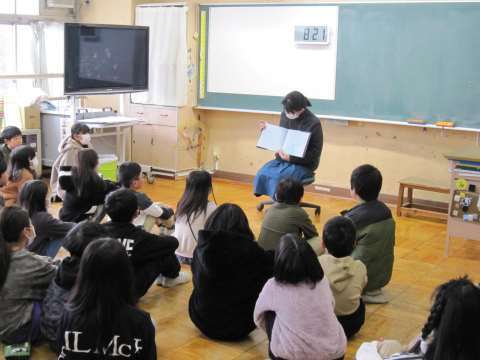 今朝は、朝読書でボランティアさんが読み聞かせに来てくれました。子どもたちは、真剣に聴くことで物語の世界にどっぷり..という感じでした。