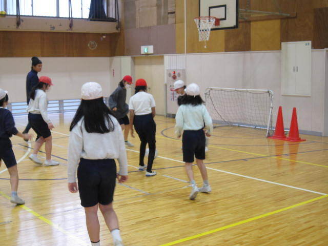 4年生は、校庭でサッカー型ゲームを行っていました。4年生にもなると互いに声をかけあう様子も見られます。ゲームに勝つためにはチームで協力が必要ですが、どのように協力するかをみんなで共有していくことが大切ですね。