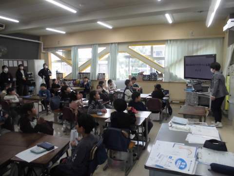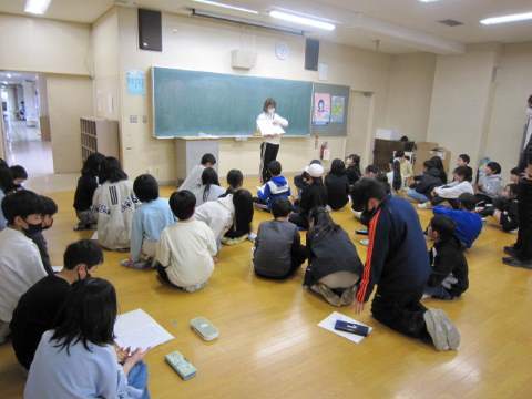 5,6時間目は、6年生がお箏の体験を行いました。初めて触れる箏に始めはドキドキしていましたが、楽器に慣れるにつれ、音色を楽しみながら演奏を味わっていました。また、今回は「未来(みら)くる先生ふれ愛推進事業」の一環で、キャリア教育を支援する取り組みとして、先生から自身の将来の夢に辿り着くまでの道のりや努力を伺い、将来のイメージを膨らませることができました。