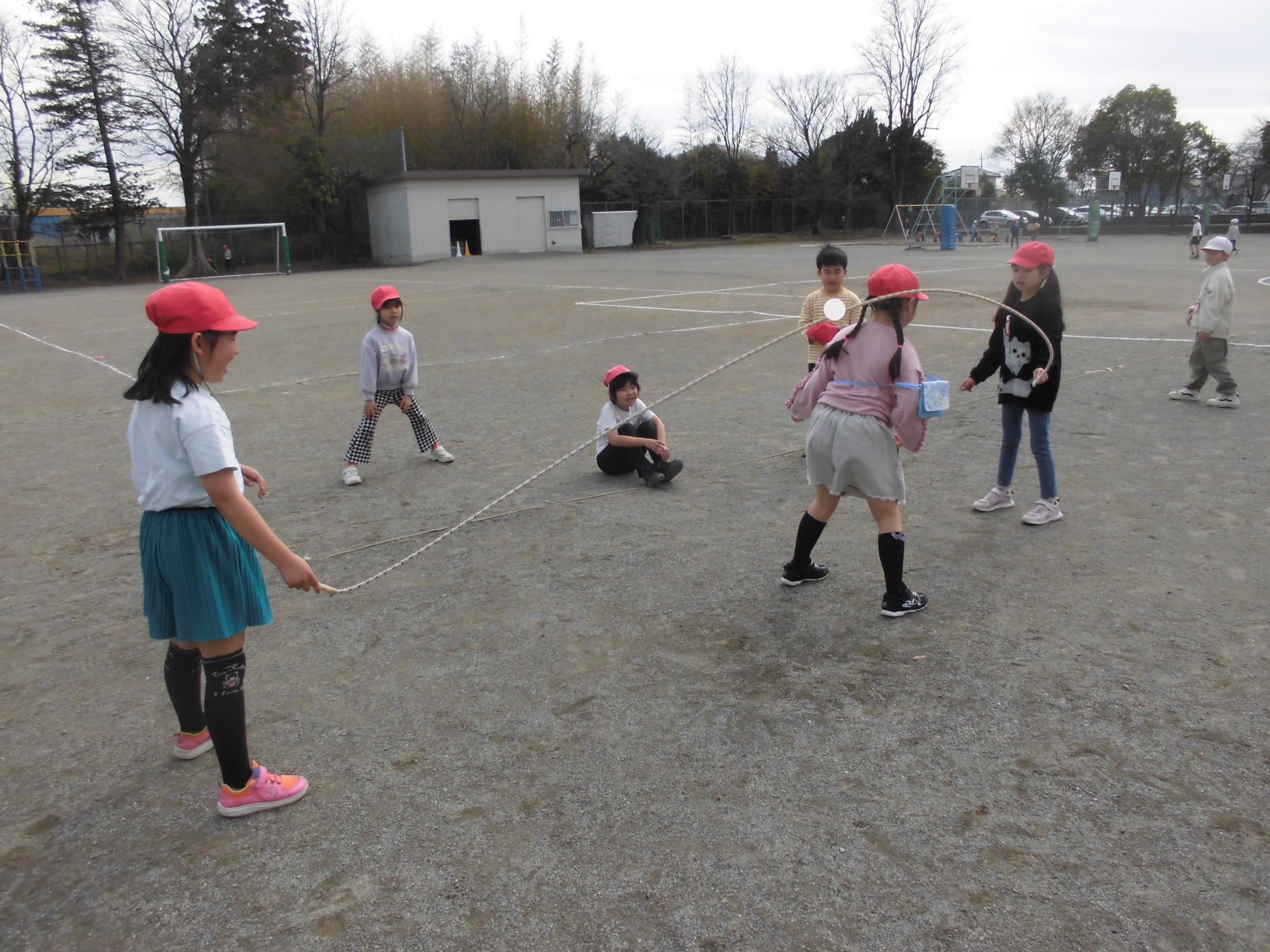 休み時間には長縄であそんでいる子たちがいました。次の体育朝会も長縄を行うので、たくさん飛べるようになるといいですね。