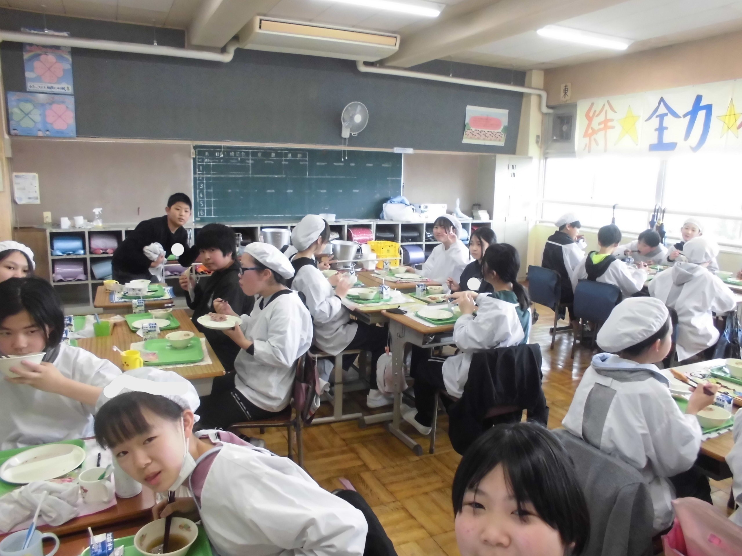 そして、今日で6年生にとっては、小学校最後の給食となりました..子どもたちは、6年間分の思い出とともに、モグモグ、パクパク、マイウ~、美味、そして楽しんで食べていました !! これからも、たくさん食べて、大きく生長してください。