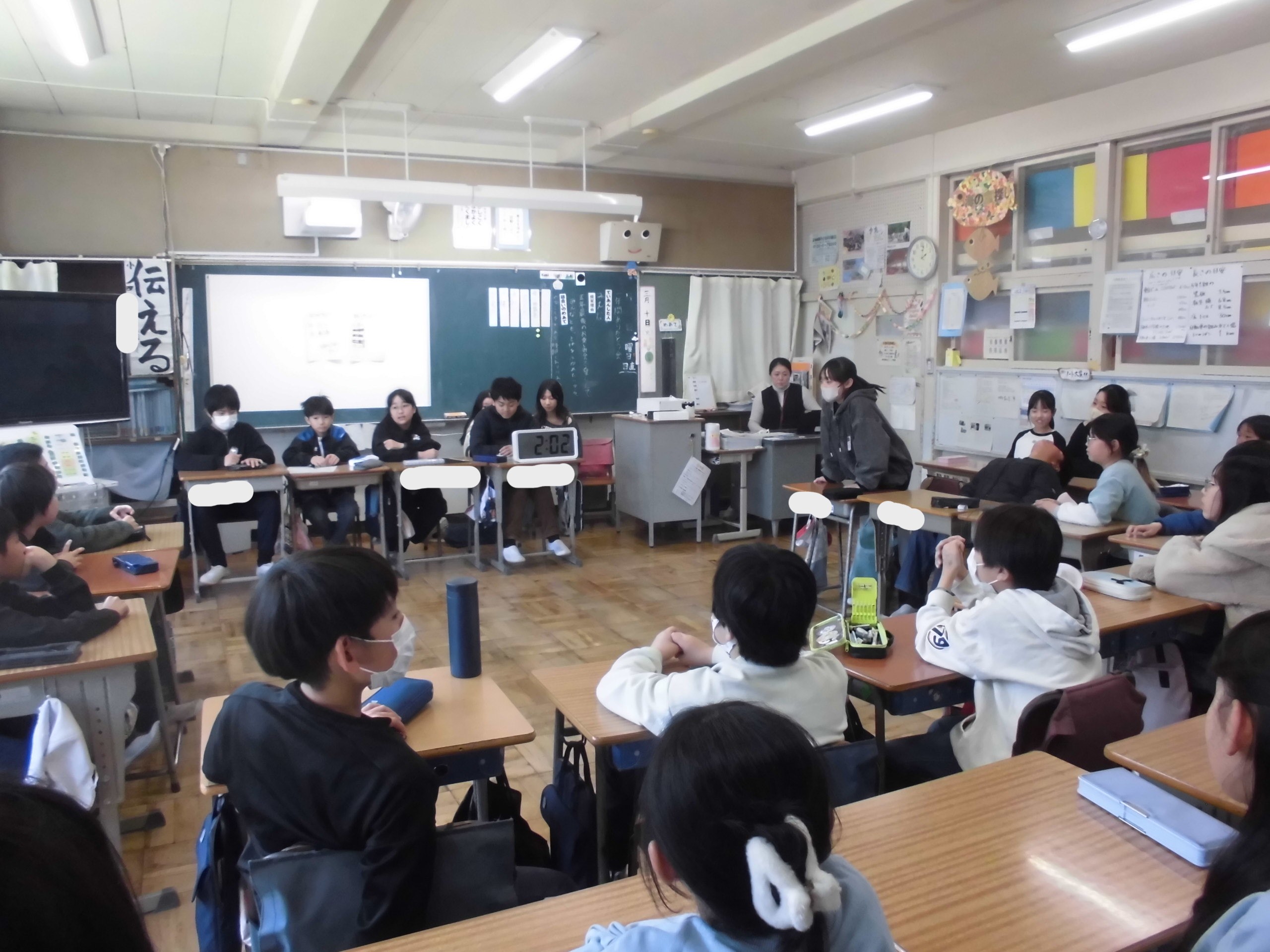 5年生は、1年間の思い出作りのために「お楽しみ会」について話し合い活動を行っていました。さすがですね、しっかりと自分の考えを自分の言葉で伝えることができています。2年生は、音楽の授業でカスタネットに取り組んでいました。リズムに合わせて、叩くのを楽しんでいました。次は、私にもカスタネット(貸してねっと)..