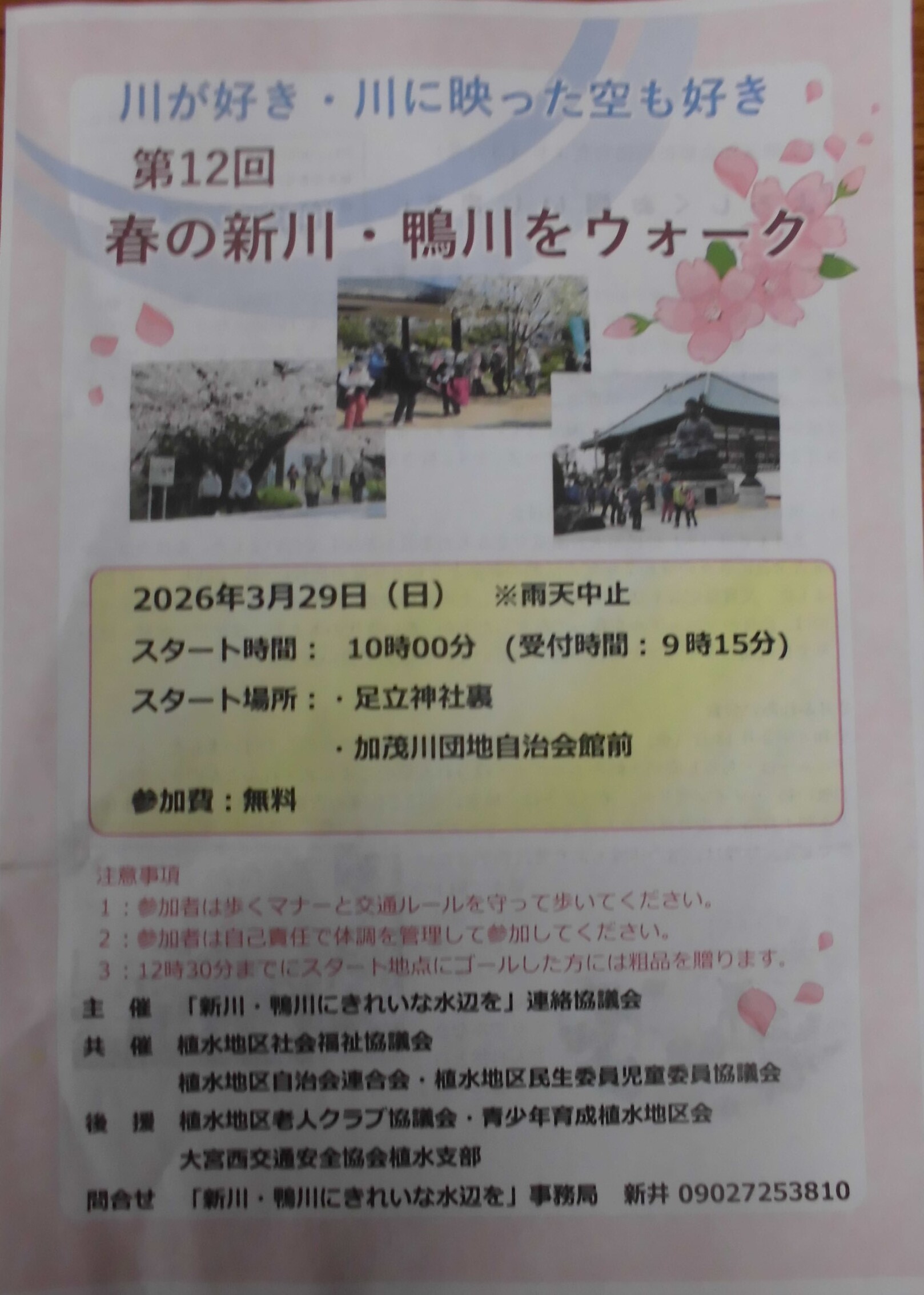 yeah !! 3月29日(日)に、待ちに待った「春の新川・鴨川ウォーク」が開催されます。yeah !! 私も歩きます。yeah !! そこで、尊敬する アントニオ猪木 氏 の名言を掲載します。「この道を行けば どうなるものか 危ぶむなかれ 危ぶめば道はなし 踏み出せば その一足が道となり その一足が道となる 迷わず行けよ 行けばわかるさ」さぁ、みなさん、一緒に歩きましょう !! yeah !!