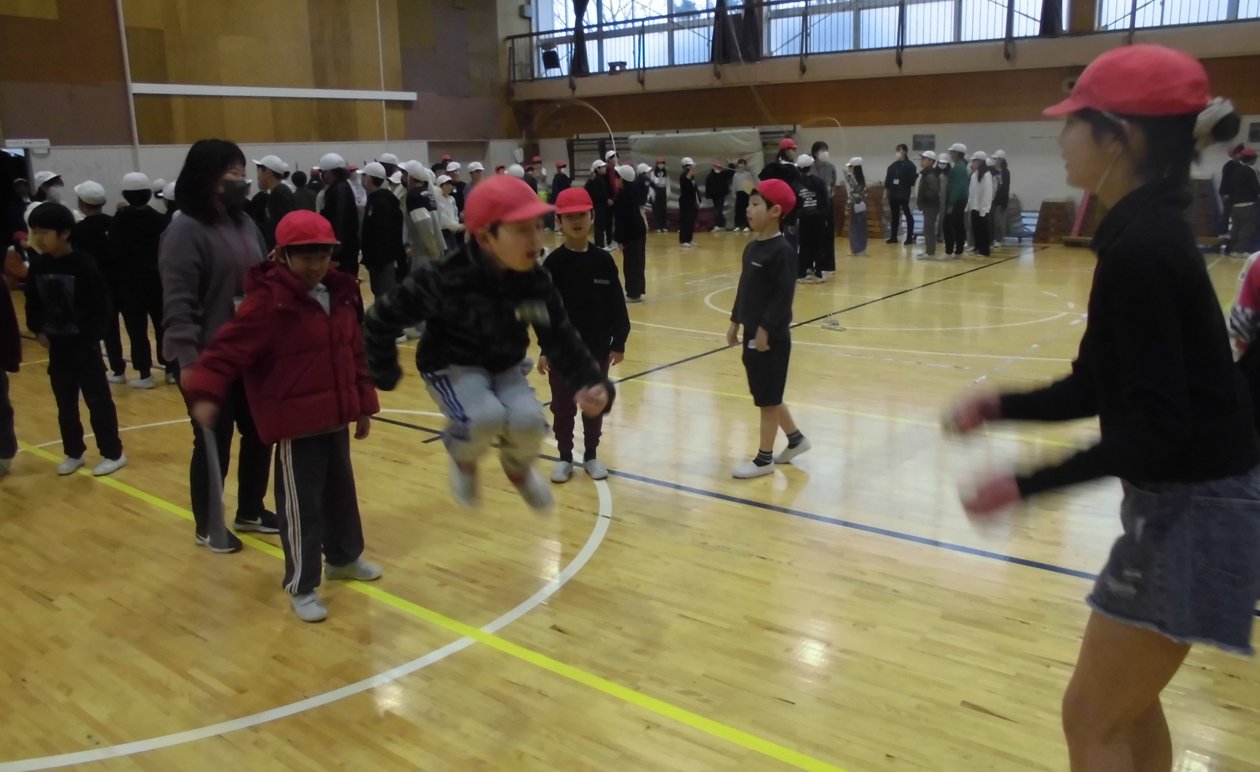 休み時間には、仲間と大繩の練習をしている植水っ子たちの姿がありました。どうすれば、あいだを空けずにスムーズに跳び続けることができるのか互いに声かけしあっていました。いいですね!! たくさん練習してください。