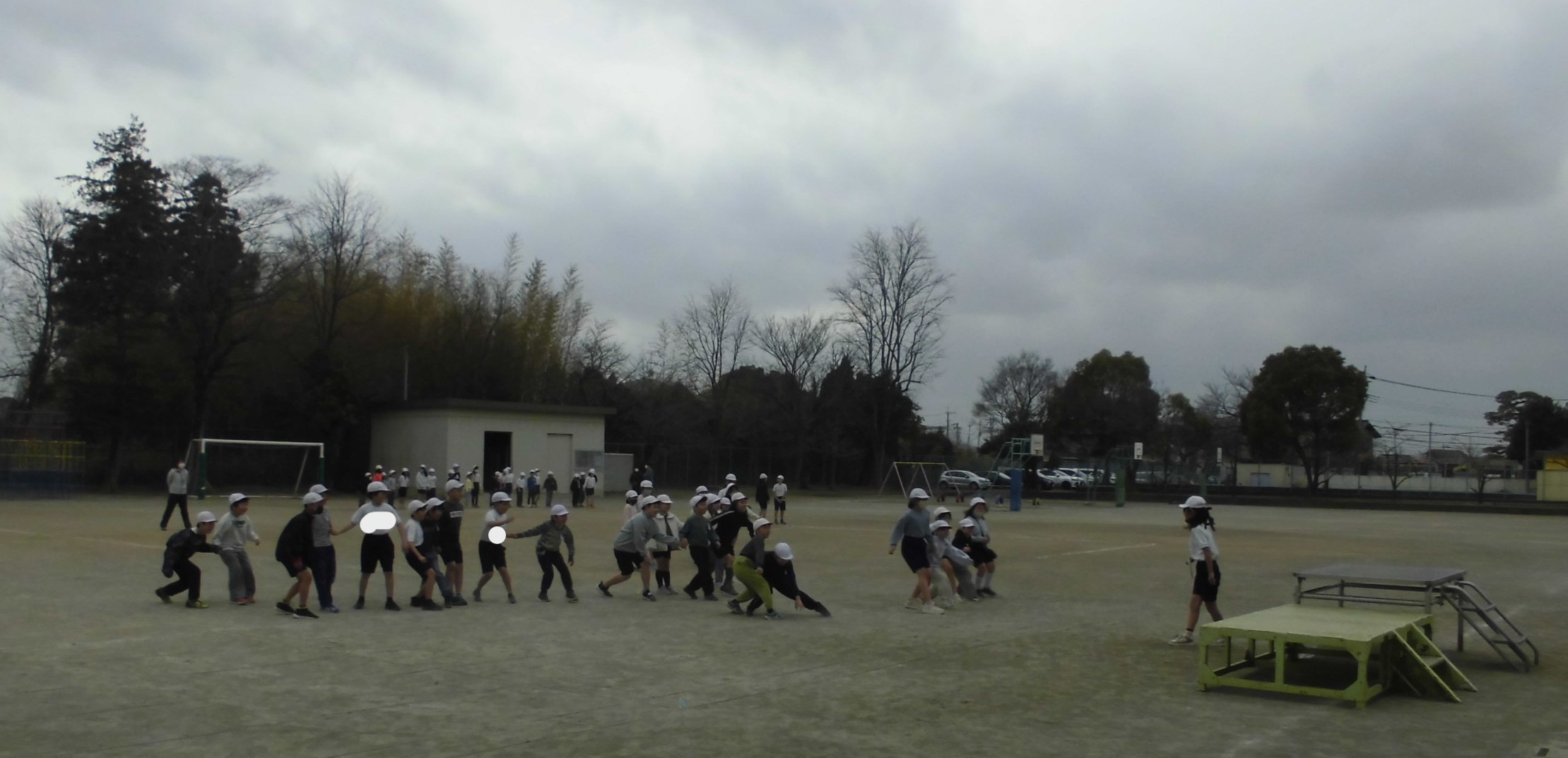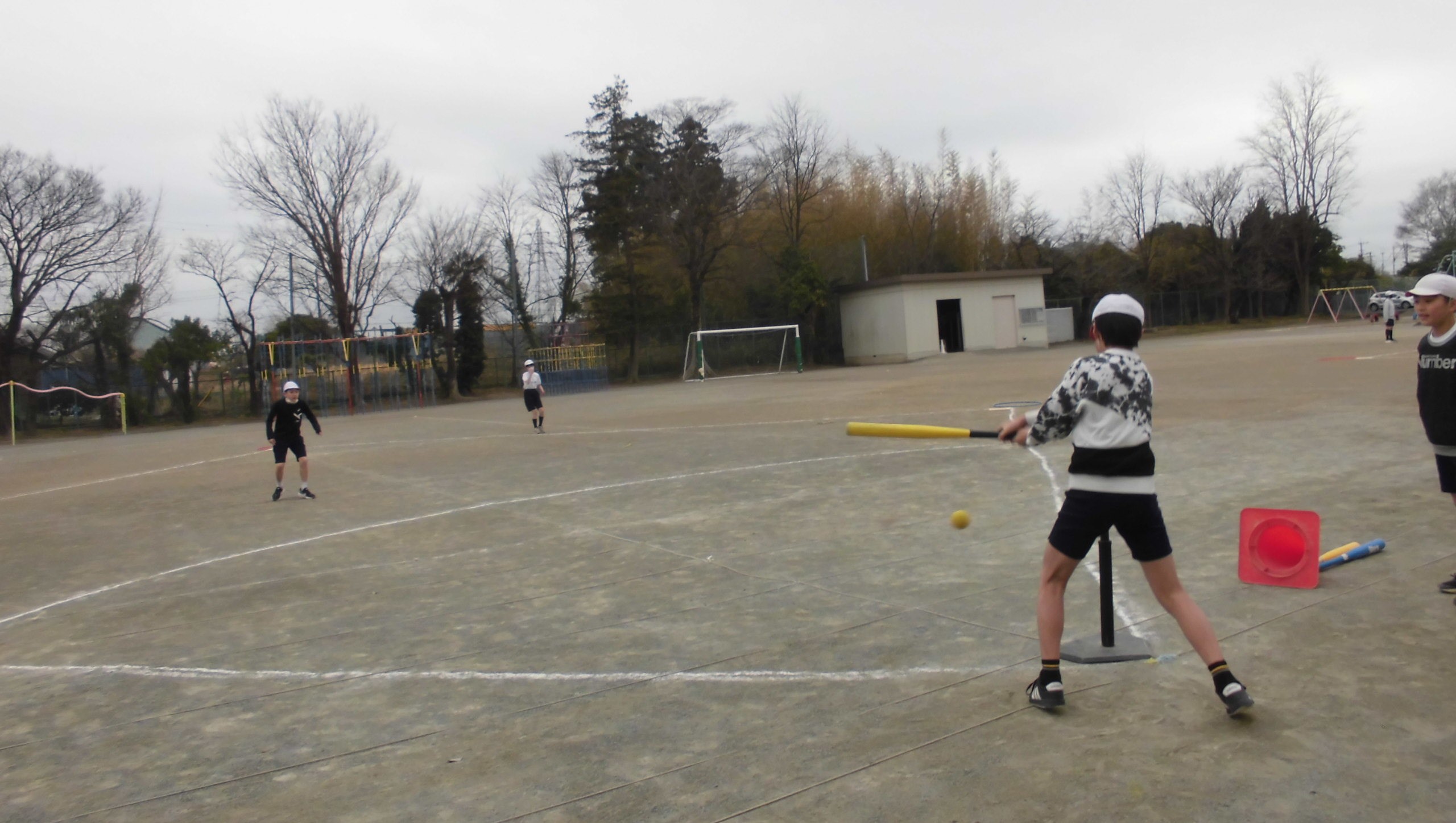 今日は朝から雪めいた天候でしたが、昼過ぎには日差しが差してあっという間に校庭も乾いてきました。