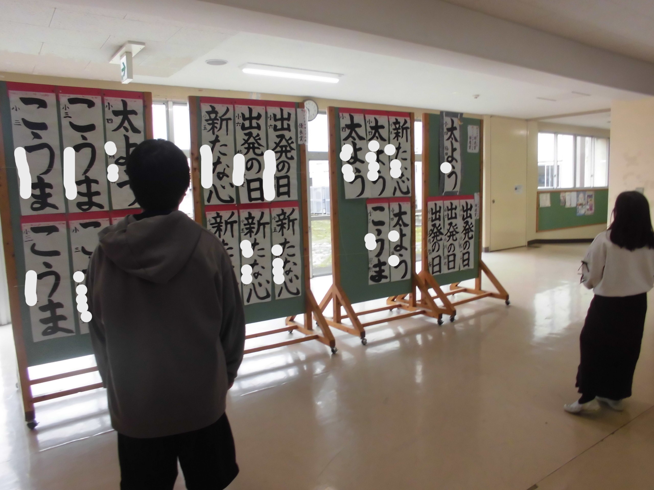 現在、昇降口前では、「さいたま市書初め展覧会」に出品された植水っ子たちの素晴らしく力強い作品が展示されています。授業参観・懇談会にお越しの際には、ぜひご覧ください。