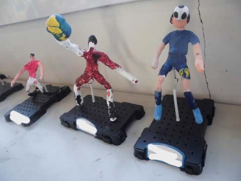 5年生の廊下で素敵な作品を見つけました。針金から人の動きを作り、そこに紙ねんどで肉付けして着色した作品です。みんなそれぞれの人の動きとそれにまつわる物語の一瞬が切り取られていて、とても面白かったです。