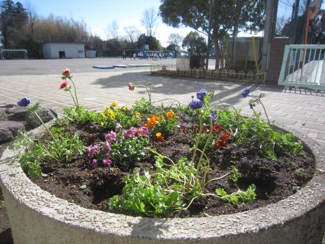 最後に今日は春(卒業式・入学式)に向けて花壇の花を新しくしました。栽培委員会の児童が選んだ花を中心にセレクトしてあります。アネモネ・ムスカリ・ビオラ・ネモフィラ(もう咲いている!)・ナデシコを植えました。お立ちよりの際にはぜひご覧いただければと思います。