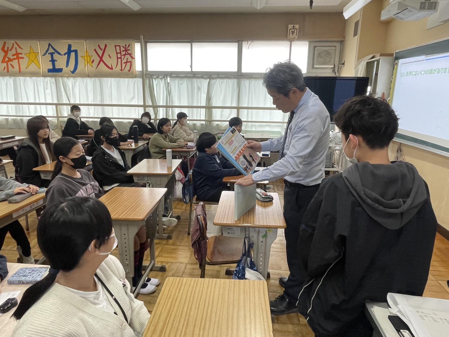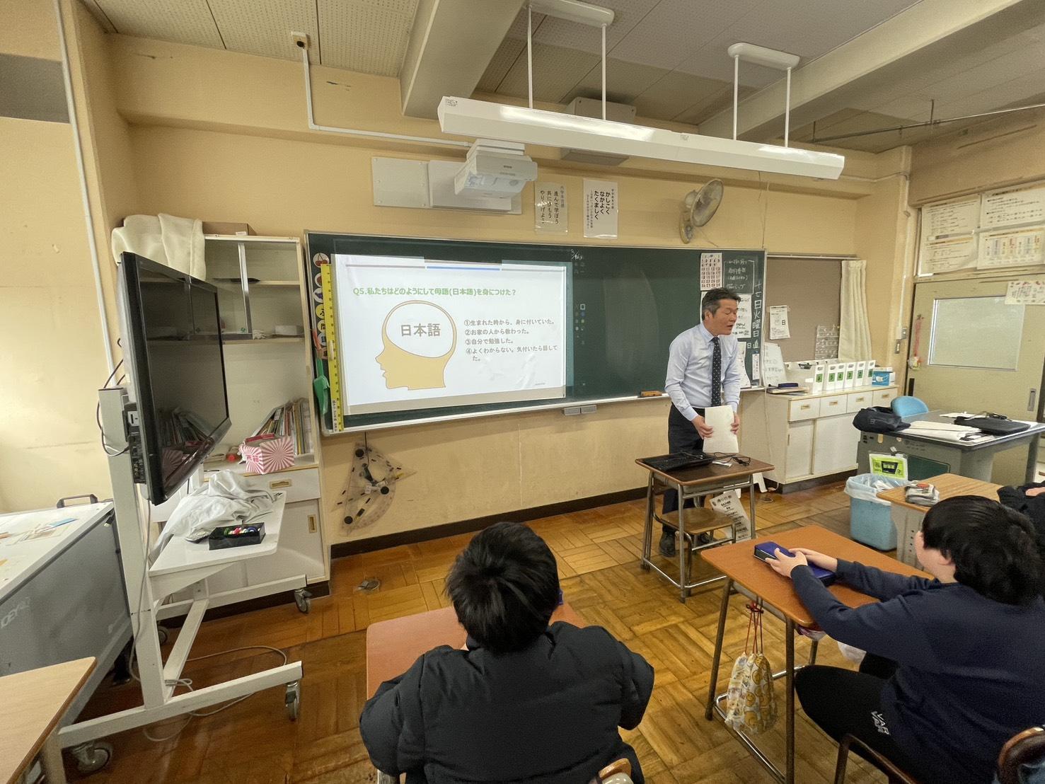 今日は校長自ら6年生に授業を行わせていただきました!「ことばの世界」を通して、他の国の言葉を尊重しながらも、自国の言葉にも目を向けて、良さに気付いてもらえるよう授業したつもりです。ぜひ6年生には、自らの力で道を切り開いていけるようなたくましさを身に付けて世界に羽ばたいて欲しいと願っています!
