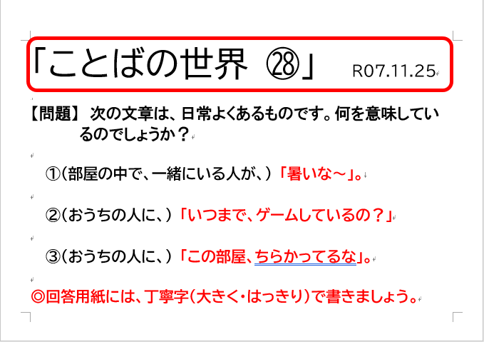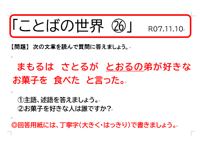 朝の時間は、朝学習でした。子どもたちも課題に対してスムーズに取り組むことができてきました。「書く」をたくさん練習して、誰にとっても読みやすく、わかりやすい文章を書けるようになってください。