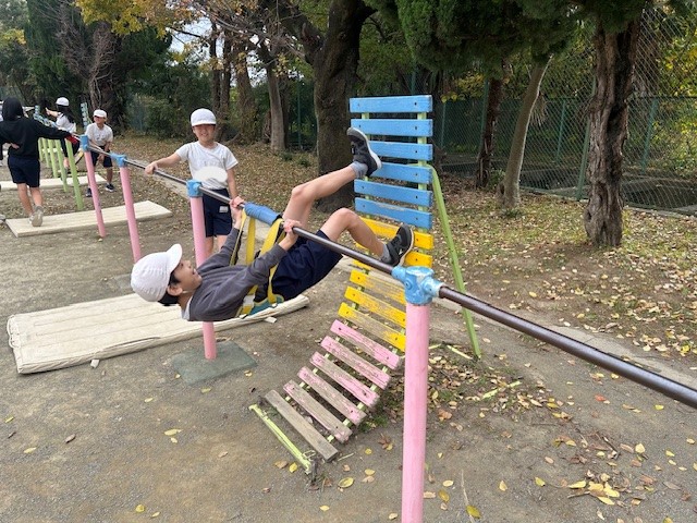 昼休みは、みんな活発に体を動かしました。そんなとき、「ちょっと、見てほしい技があるんですけど」と子どもから言われ、一緒に鉄棒に行くと、とてもきれいな「グライダー」を披露してくれました(友だちとシンクロしていました)。飛び姿がかっこよかったです。新しい技ができるようになったら、また声をかけてください。