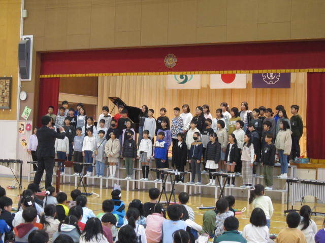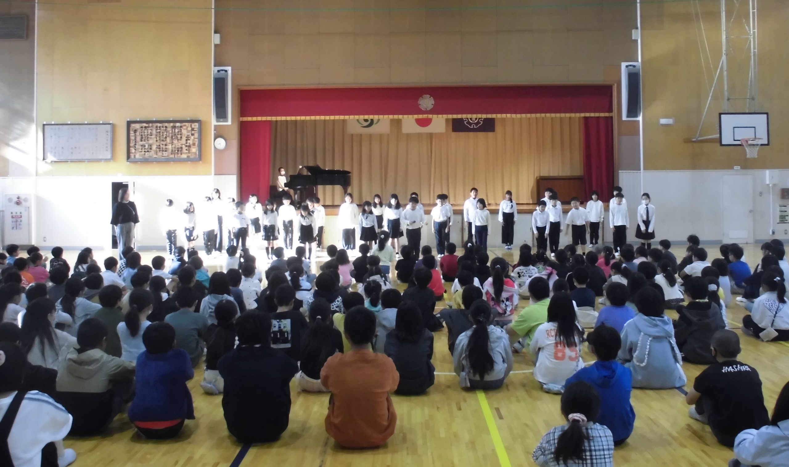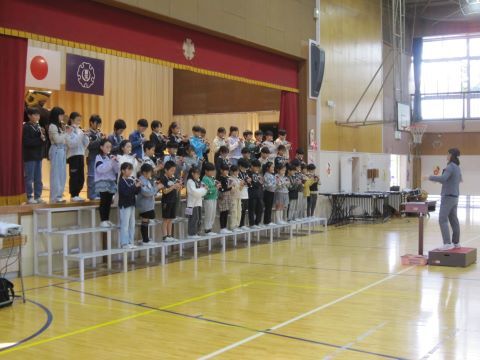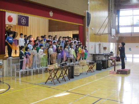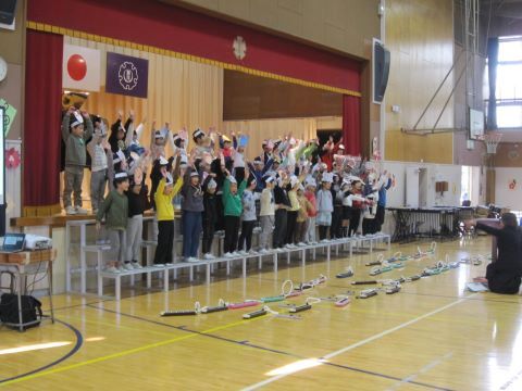こんにちは。今朝は、体育館で音楽朝会がありました。「今月の歌:気球に乗ってどこまでも」に合わせて、みんなで軽快なスッテプ & クラッピングで楽しみました。曲に合わせて、体を動かす..いいですね。