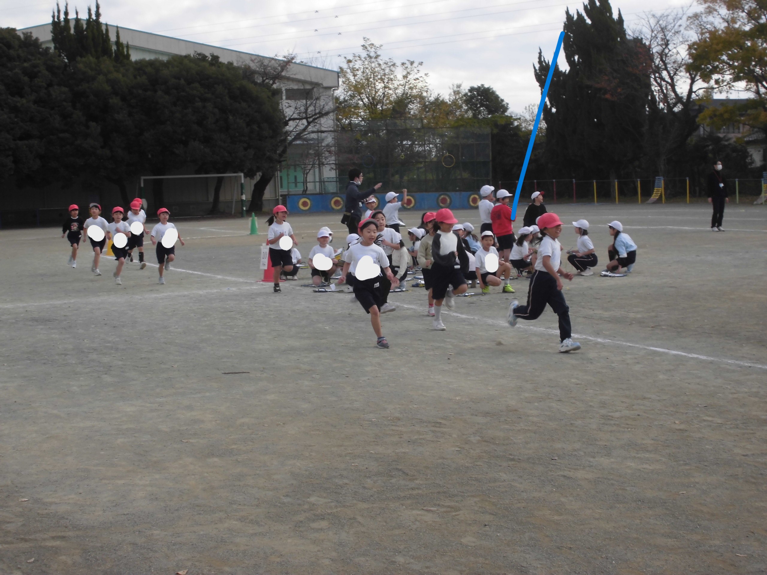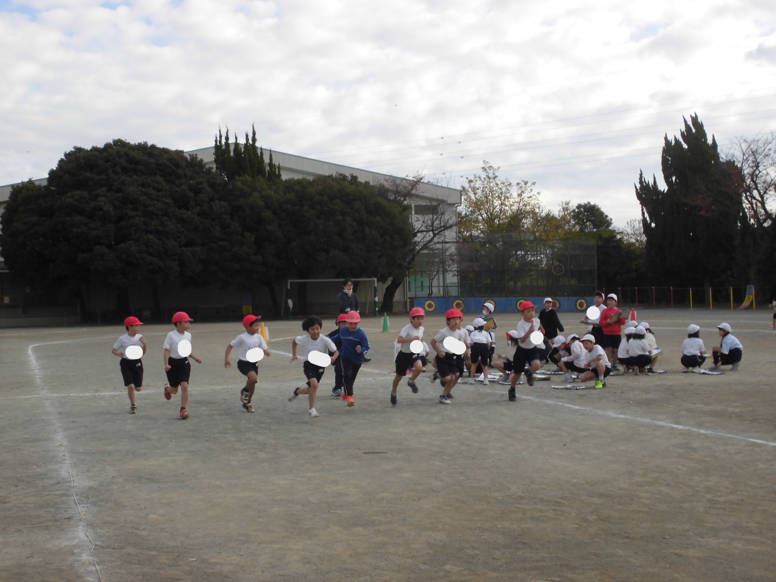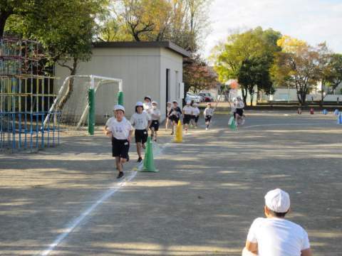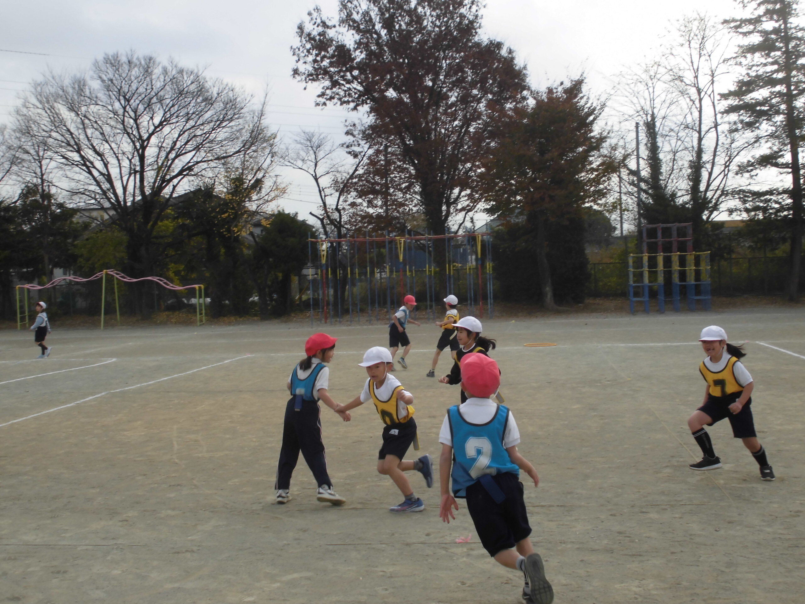 2年生は、先週も紹介した、体育で「プレゼント運びおに」をやっていました。前回は1回目でしたが今回は回数を重ねてのゲームだったので、一人ひとりが考えてゲームに取り組んでいる様子が見られました。まだ2年生なのでチームプレイは難しいのですが、ここで考えてゲームを行うことが学年が大きくなってのチームプレイにつながるので、みなさん考えてどうやったらたくさん点が入るのか、どうすれば失点を少しでも防げるのか考えてみましょう。