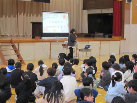 今日の講話・生活朝会では、12月の生活目標についての話があり、生活目標は「ともだちとなかよくしよう」でした。担当の先生が、みんなは「ひとりじゃない」という恩師からのメッセージを紹介し、①みんなで支え合っている②ひとりじゃないからみんなのことを考えないといけないという2つの意味があることをみんなに話していました。生活目標の達成に向けて、相手の気持ちを考えられるみなさんになってほしいと思います。