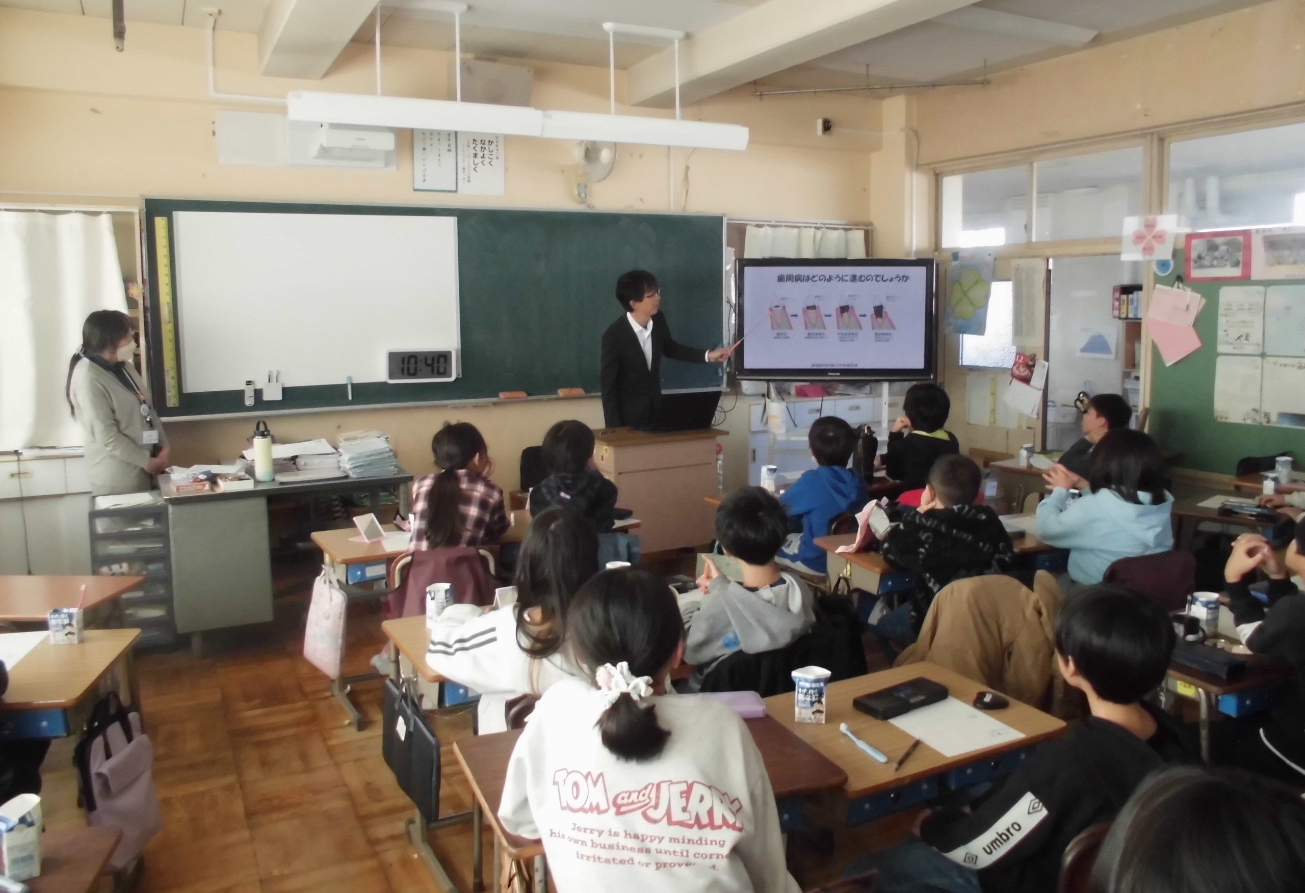 4年生は、「8020歯の健康教室」を行いました。学校歯科医の長枝先生をお呼びして、80歳まで20本の歯!を目指すために大切なことを学びました。