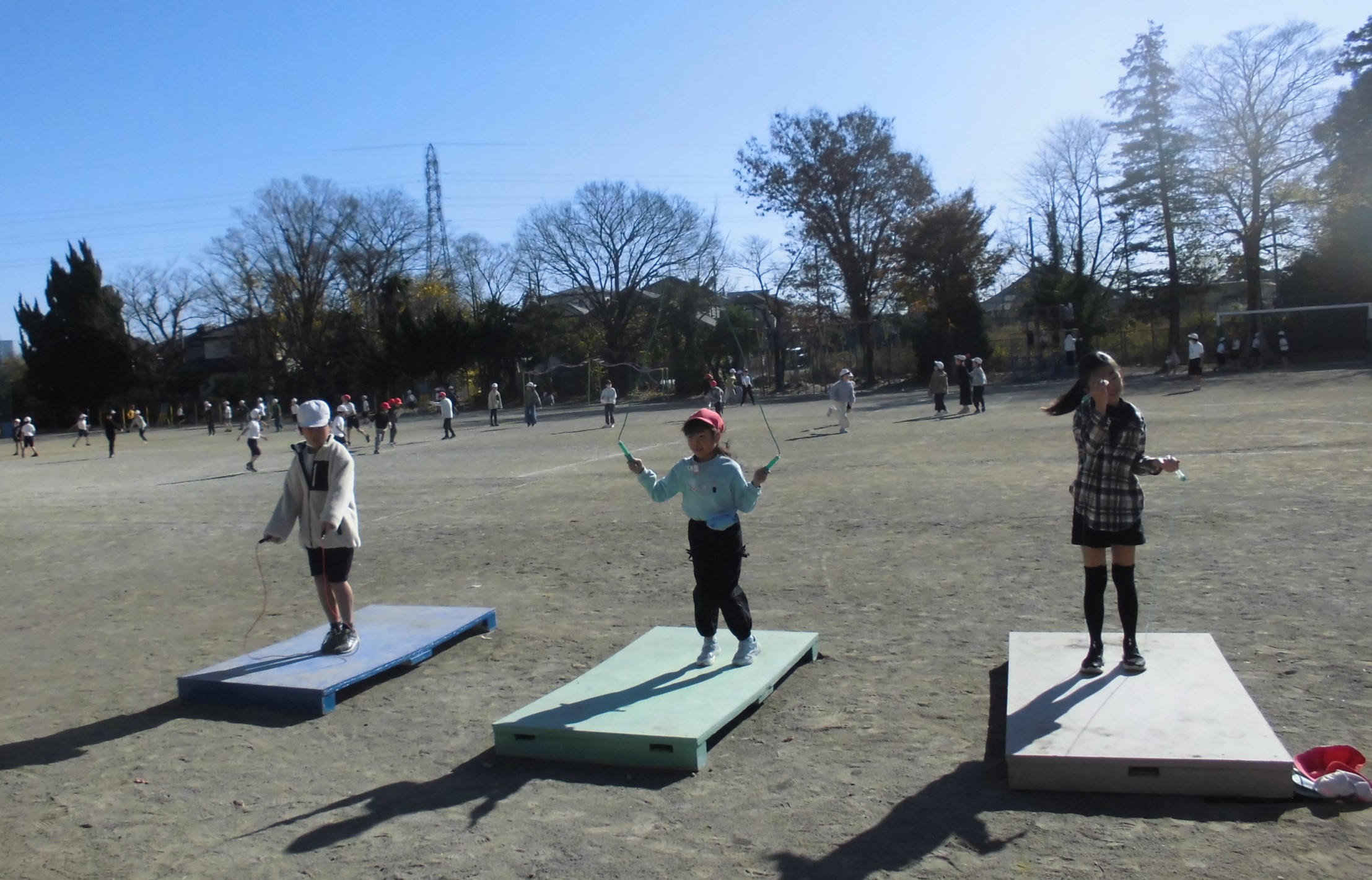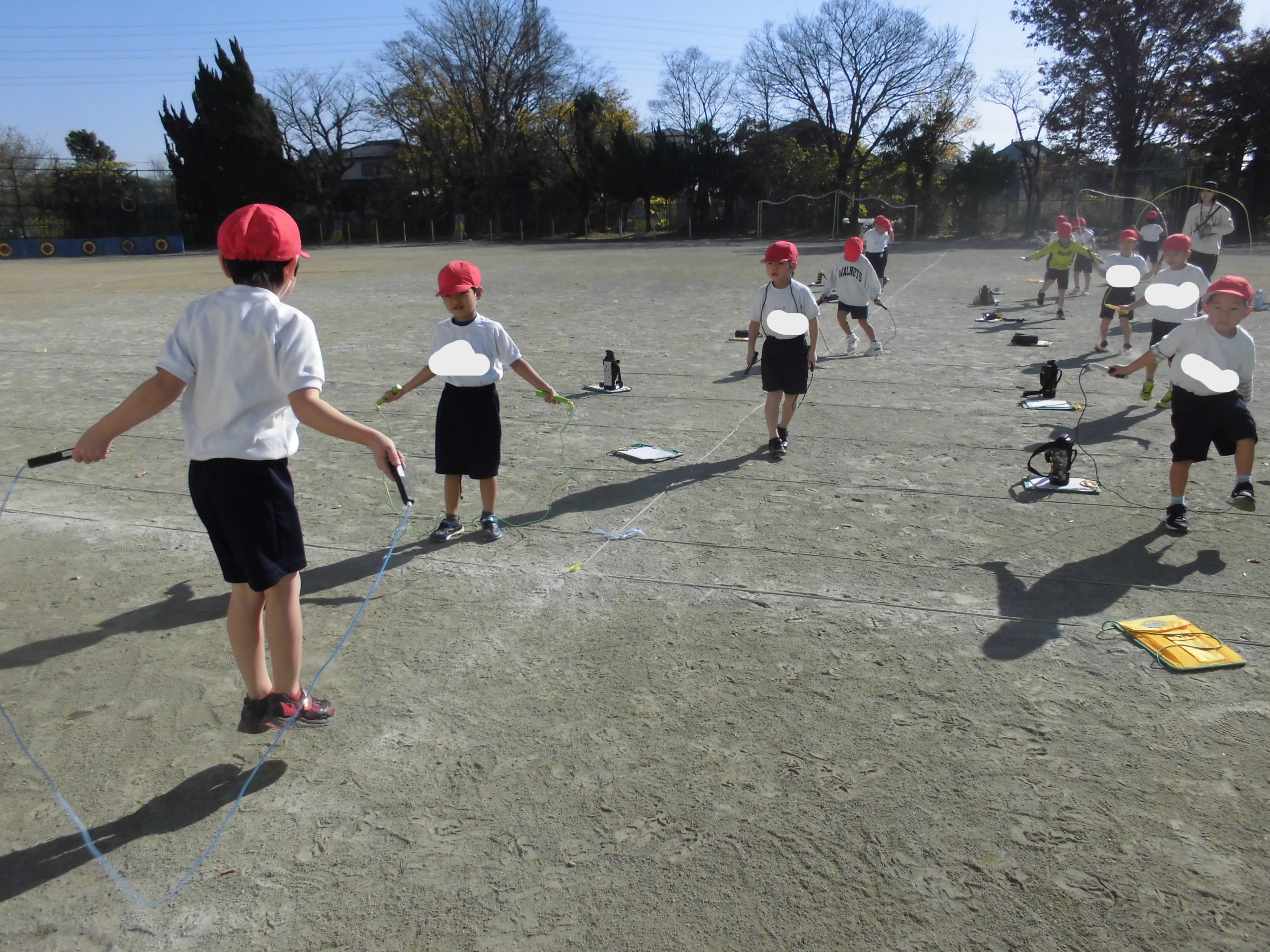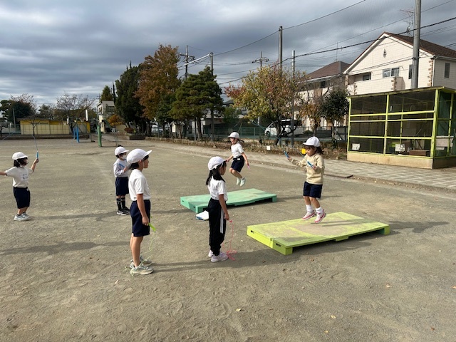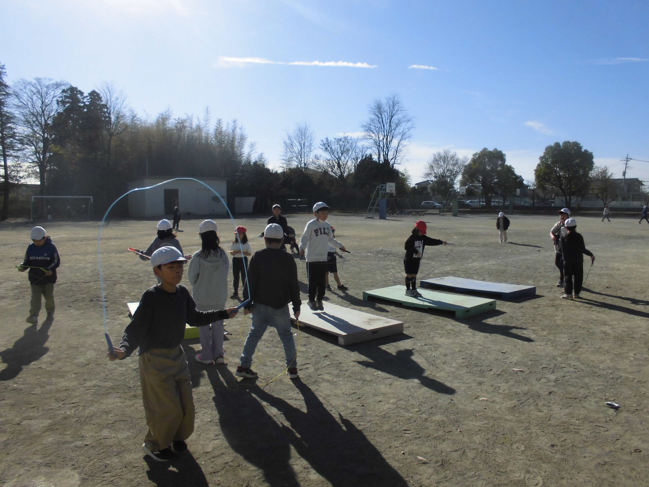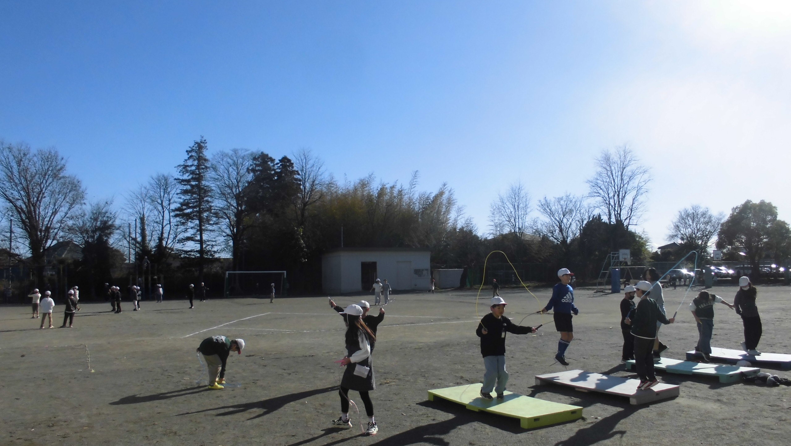 子どもたちは、晴天の下、元気に体を動かしています。縄跳びに取り組む子どもも多くなってきました。