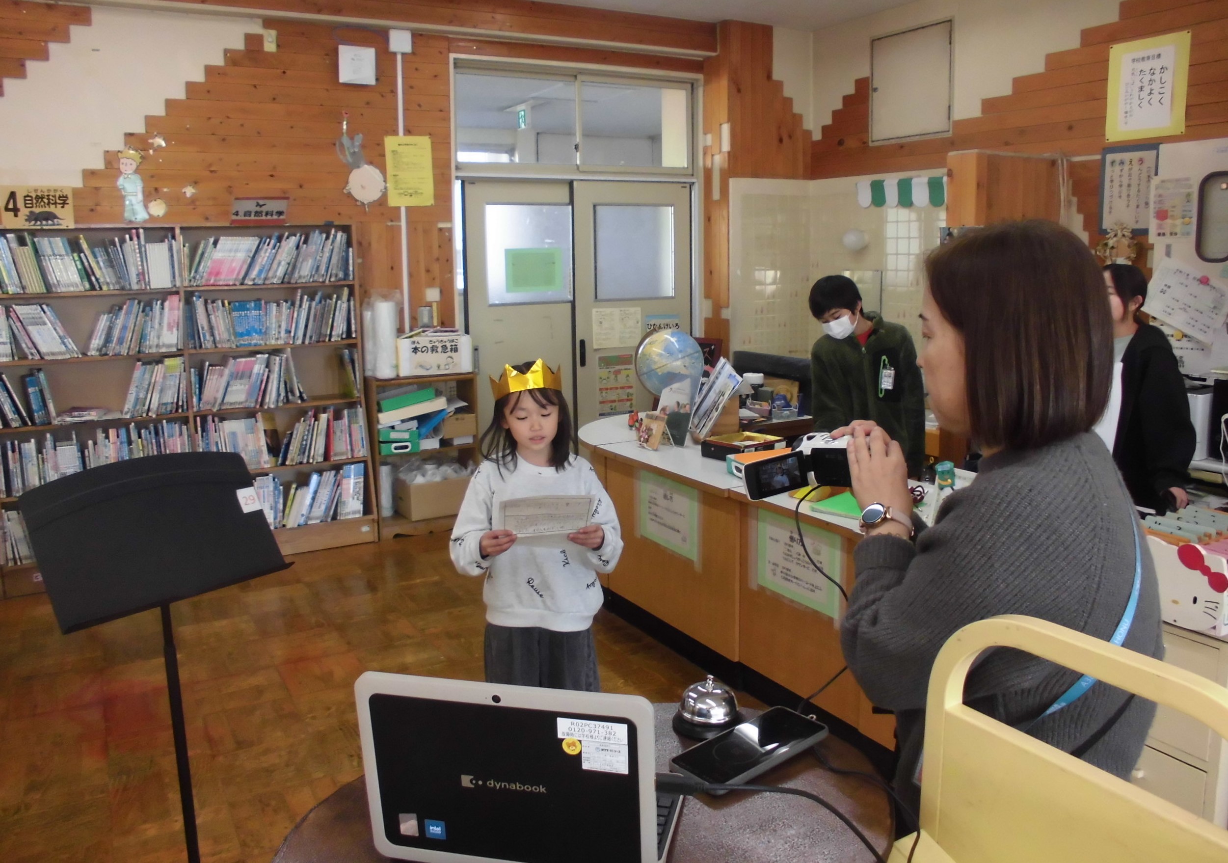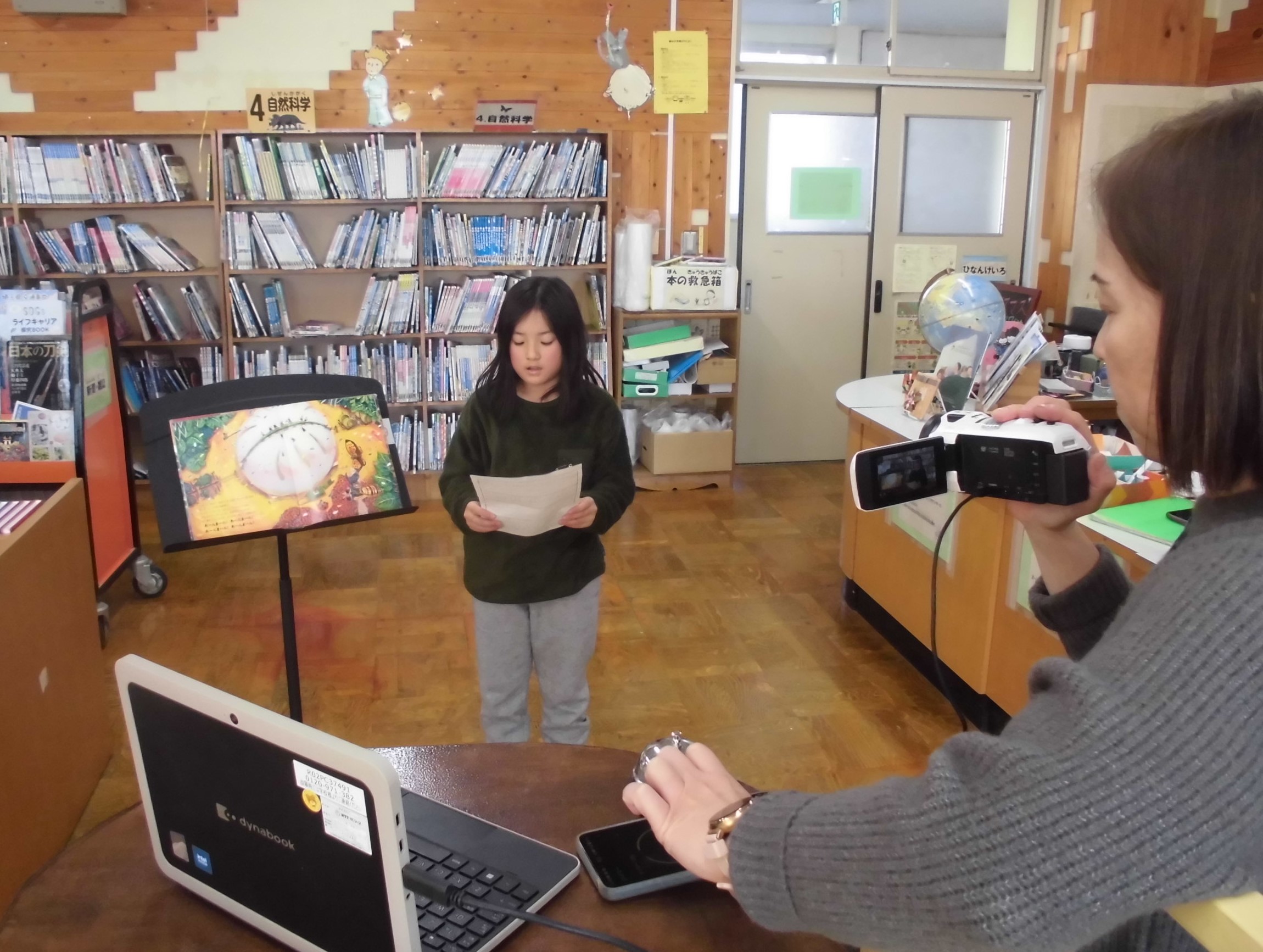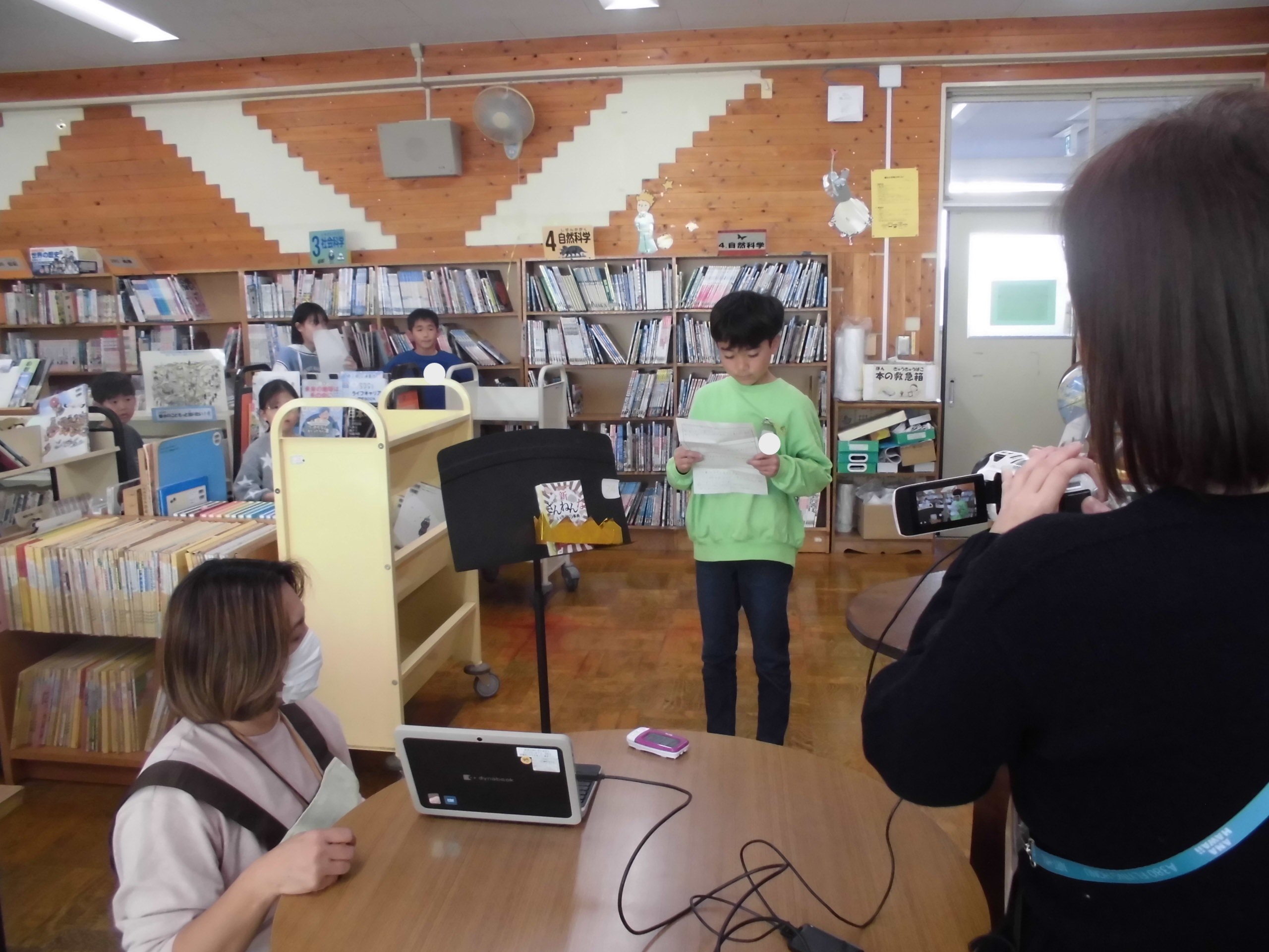 3年生は、図書館で読書の時間でした。最初に、代表の子どもが読み聞かせを行っていました。