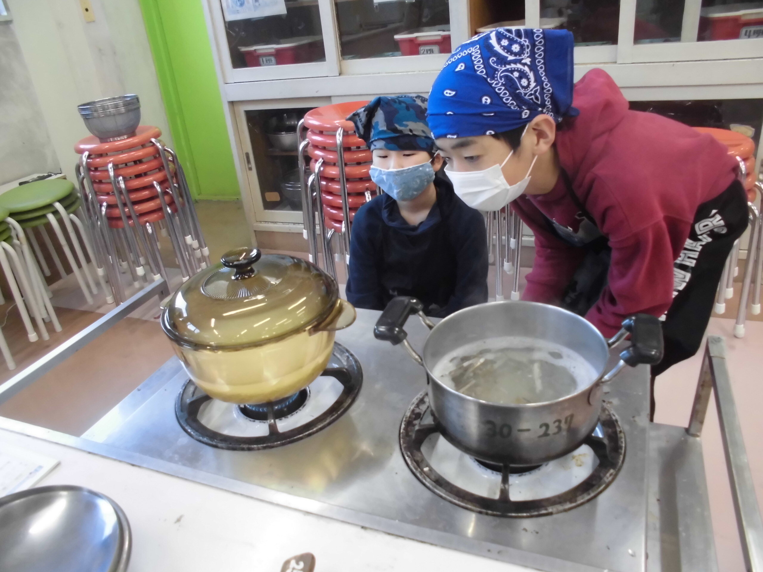 5年生は今日は別のクラスが「ごはんとみそしる」に取り組みました。最後は行けなかったのですが、きっとおいしいご飯ができたことでしょう!お家でもできることから取り組んでみてくださいね。注)良い子のみなさんへ:料理で火を使うときはお家の人の許可をもらってからにしましょう。