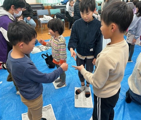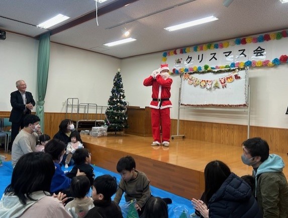 7日(日)に、水判土自治会館で「クリスマス会」が行われました。みんなで、楽しくゲームで盛り上がりました。その後、サンタさんが来てくれて、みんなにプレゼントを渡してくれました。みんな、大喜びでした。