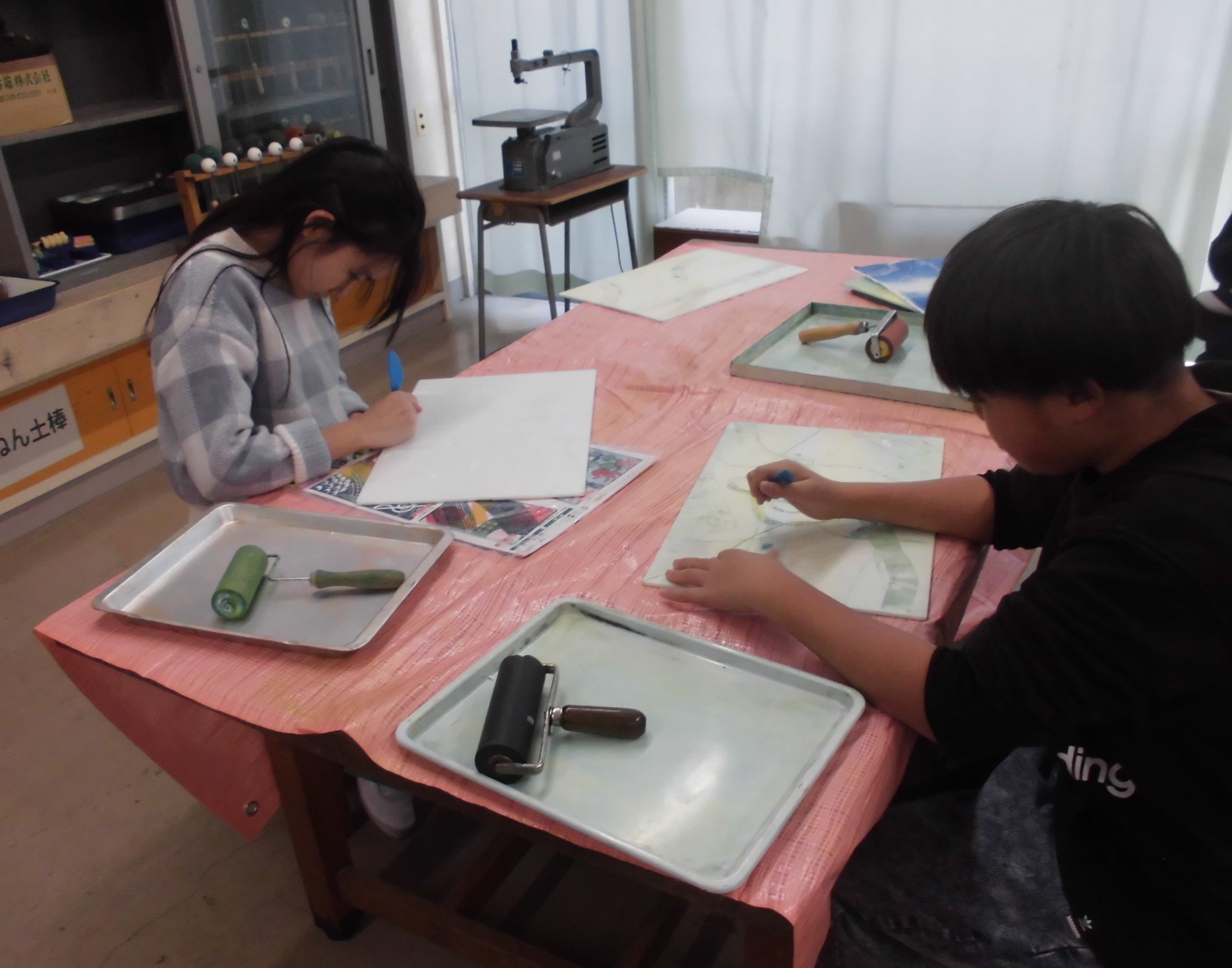 6年生は、図工でスチレン版画を行いました。ヘラでボードに模様をつけて刷ります。みんな真剣に思い思いの作品を仕上げていました。最後にどのような作品になるか楽しみですね。