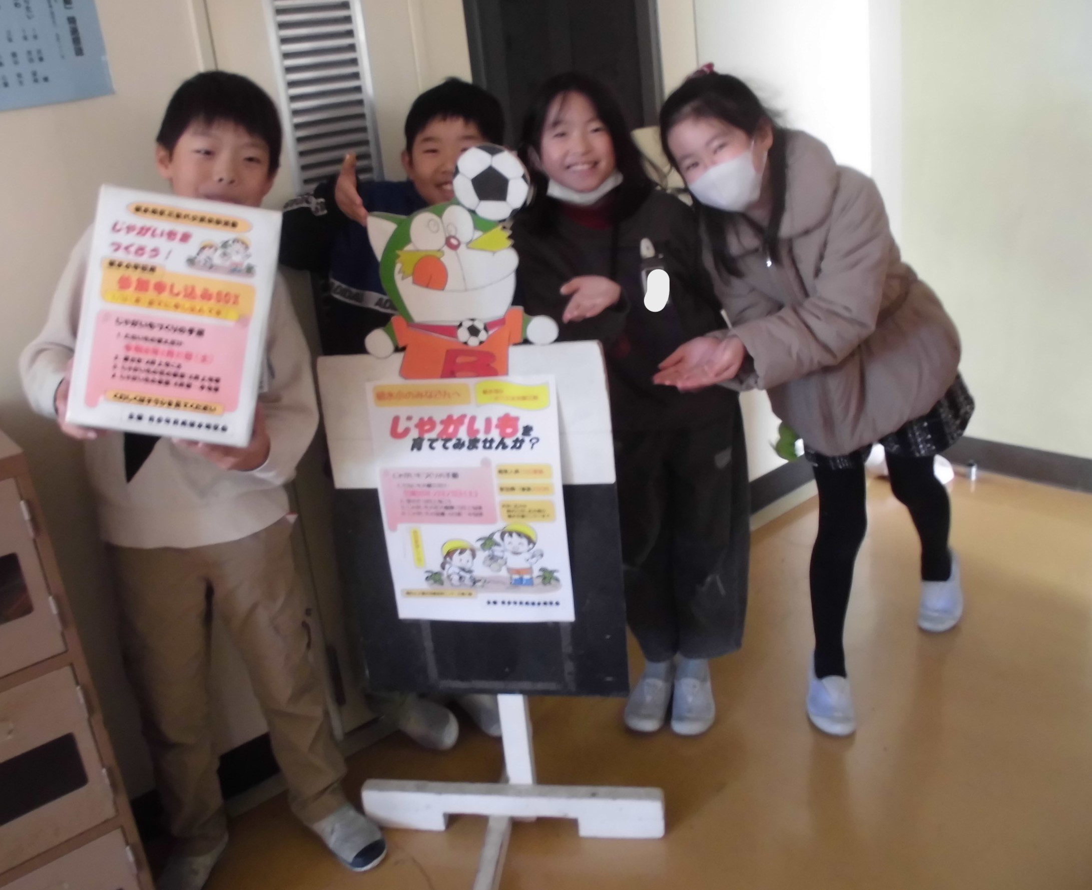 【お知らせ】「親子三世代交流体験活動 じゃがいもつくろう」が青少年育成会植水地区会 主催 で開催されることになりました。ぜひ、多くの方の参加をお待ちしております。申込用紙は、明日子どもたちに配付いたします。内容を確認の上、申し込みよろしくお願いいたします。申込用紙回収BOX は、校長室前に設置いたします。「みんなで、ポテト食べようぜ !!」
