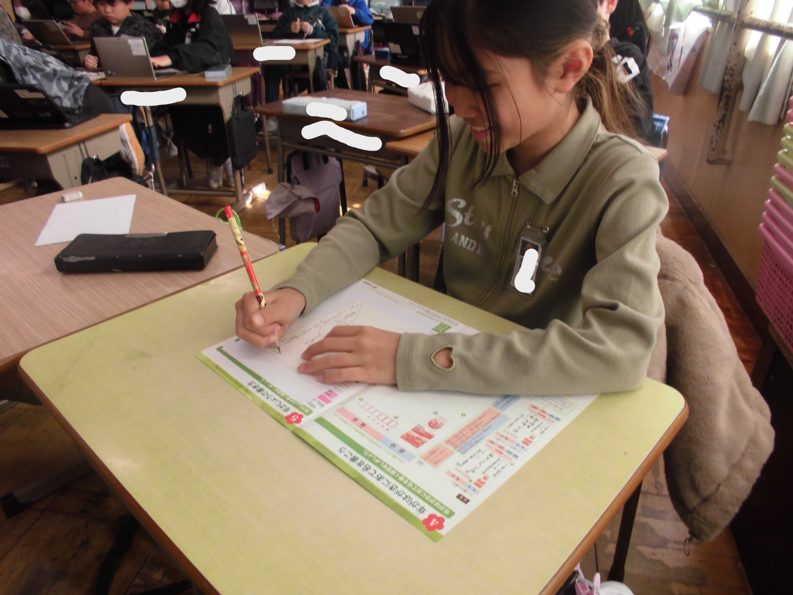 えがお学級では、算数の割り算にしっかり取り組むことができていました。とにかく問題を多く解くことが大切ですね。がんばれ、植水っ子!!